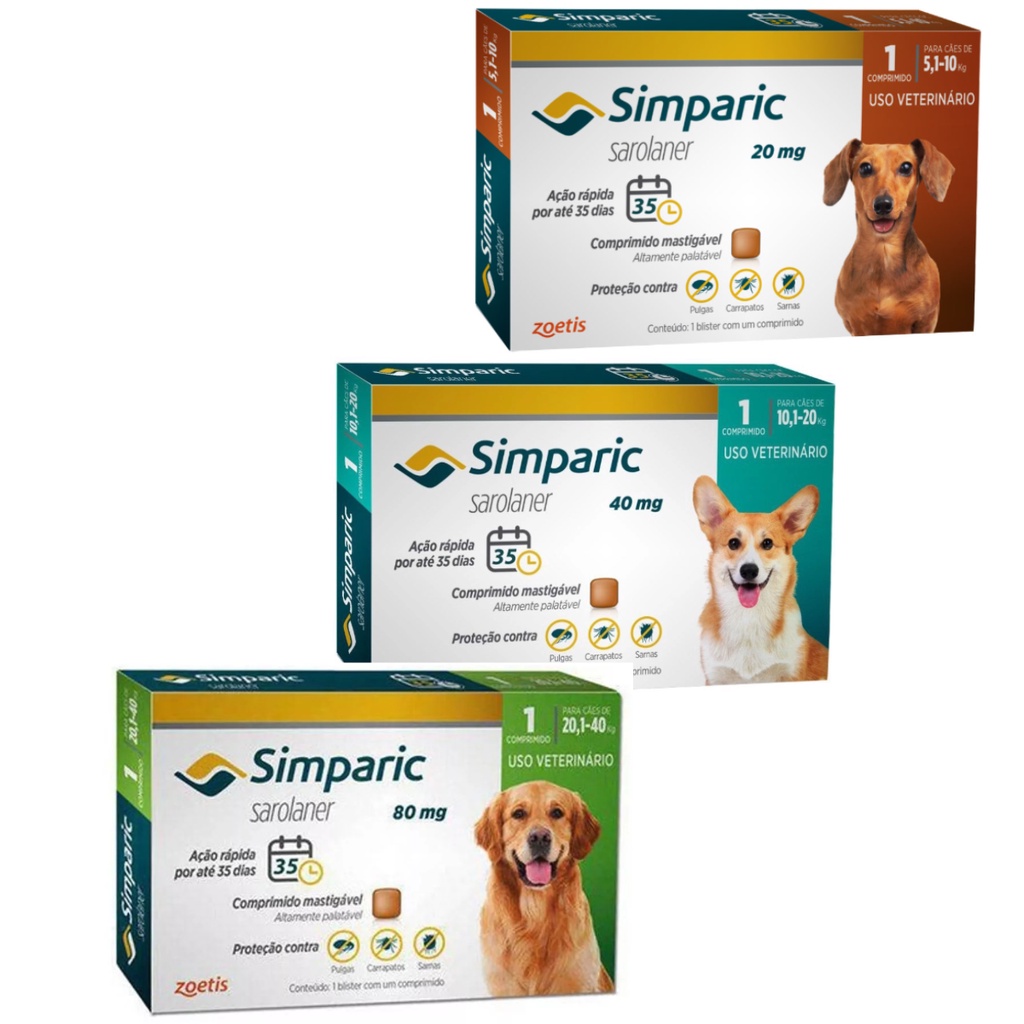 3 Antipulgas Para Cães Simparic 20mg 40mg e 80mg1 Comprimido