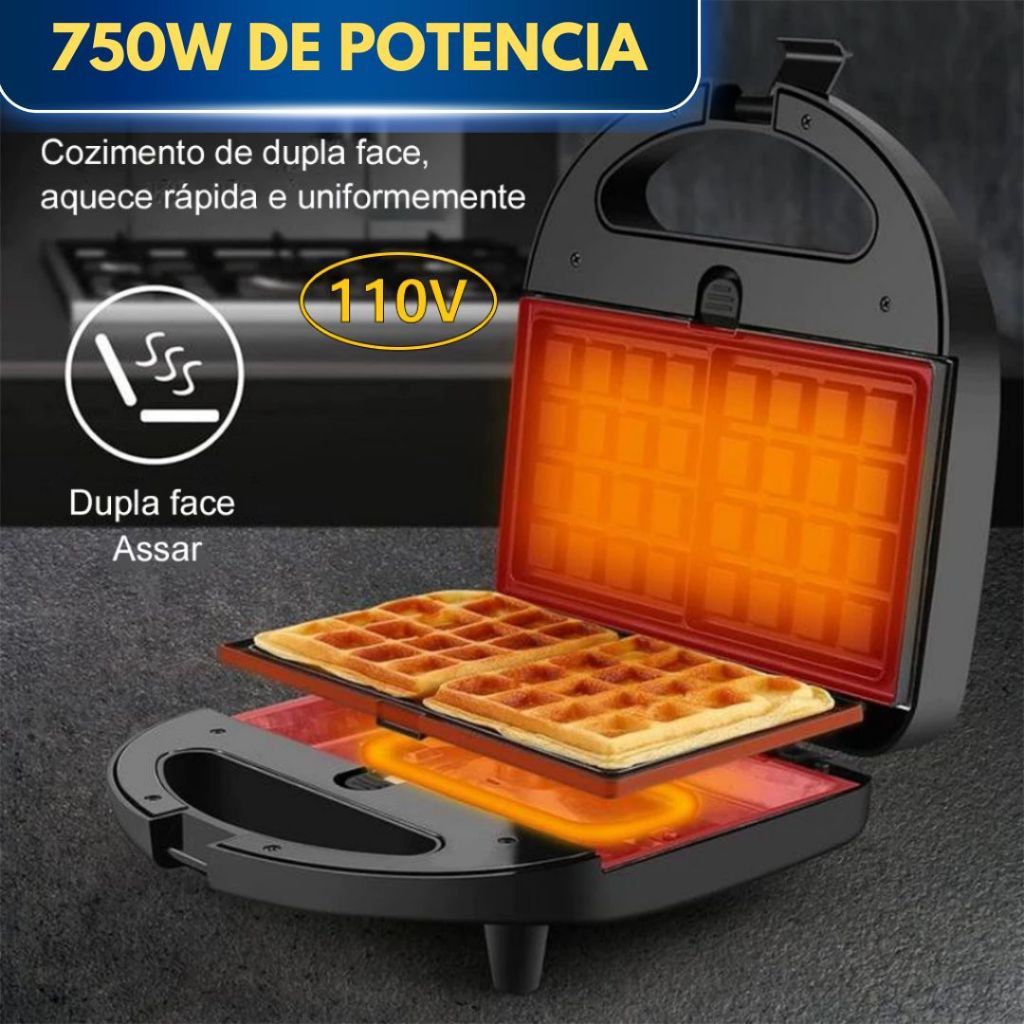 3 Em 1 Portátil Sanduicheiras Waffle Donuts Fast Antiaderente 110V/220V