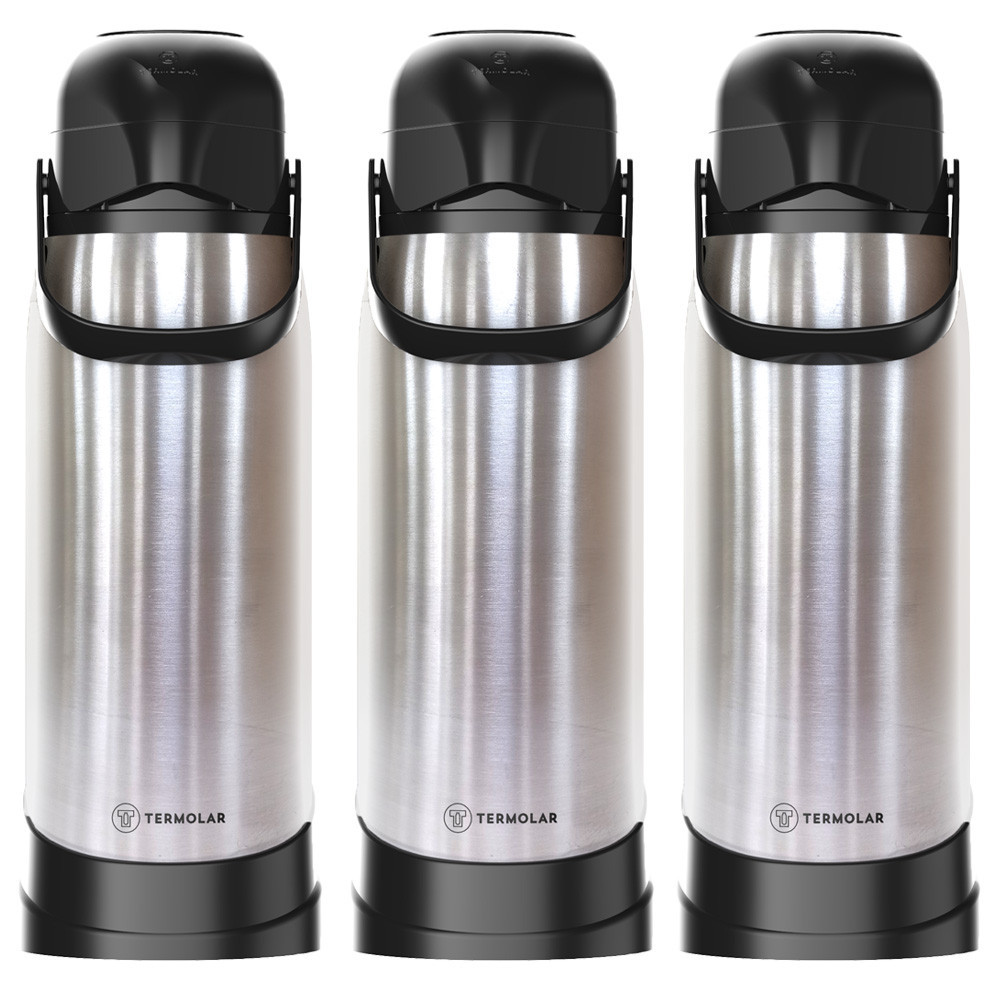3 Garrafa Térmica 100% Inox 1.9L R-Evolution Café Chá Leite Termolar