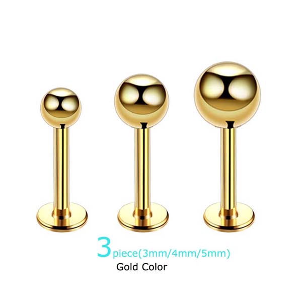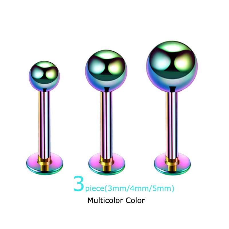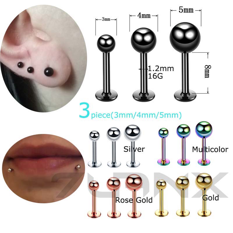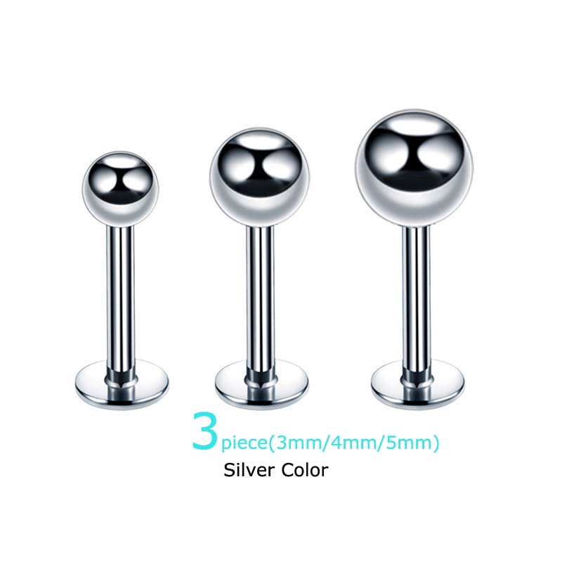 3 Peças 3 / 4 / 5mm Bola De Aço Inoxidável 8mm Labret Lip Bar Stud Ear Cartilage Tragus Pinna Piercing 16G