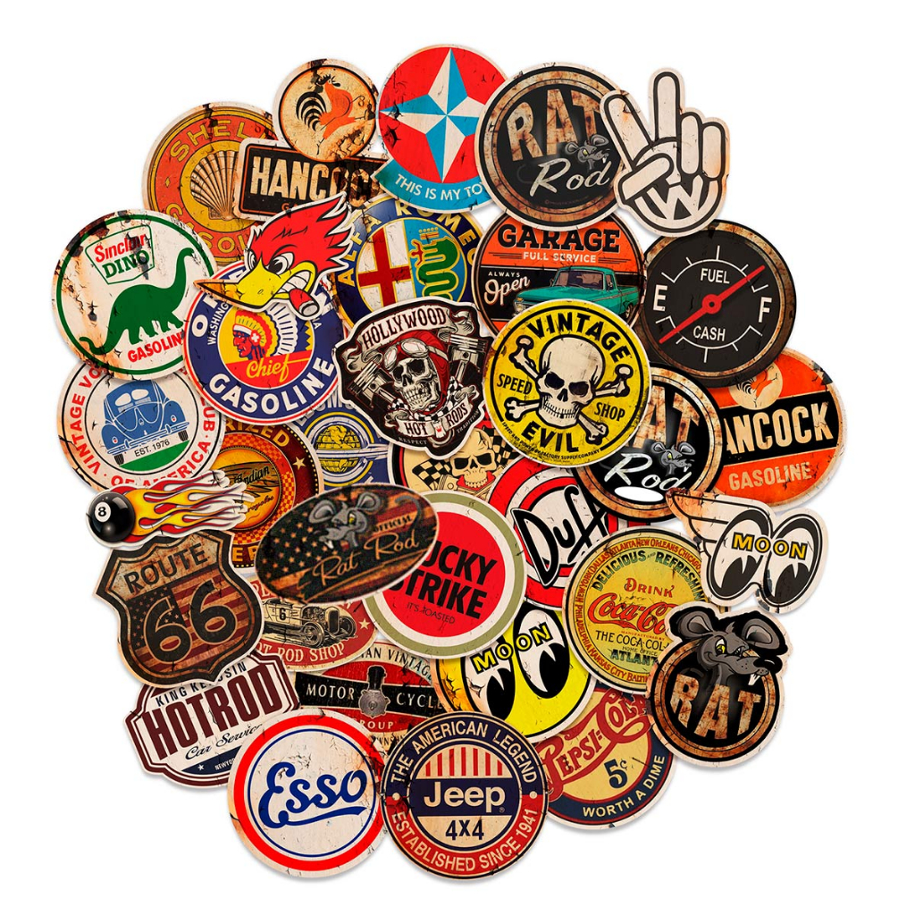 30 Adesivos Retrô Vintage Fusca Antigo Hoodride Volkswagen Ferrugem Carro Moto