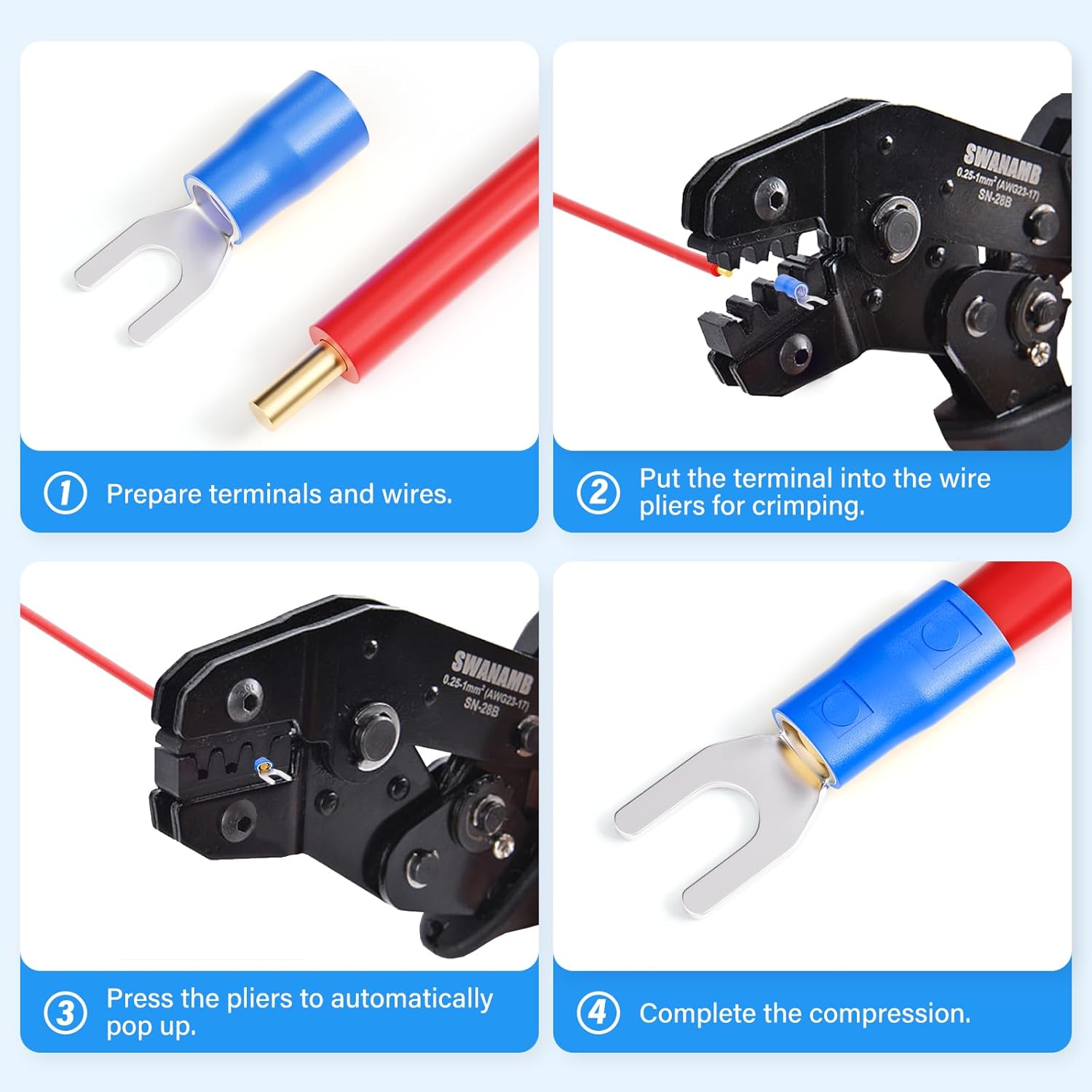 300 peças azul 16-14 AWG conector de fio isolado terminal elétrico de crimpagem tipo garfo em U