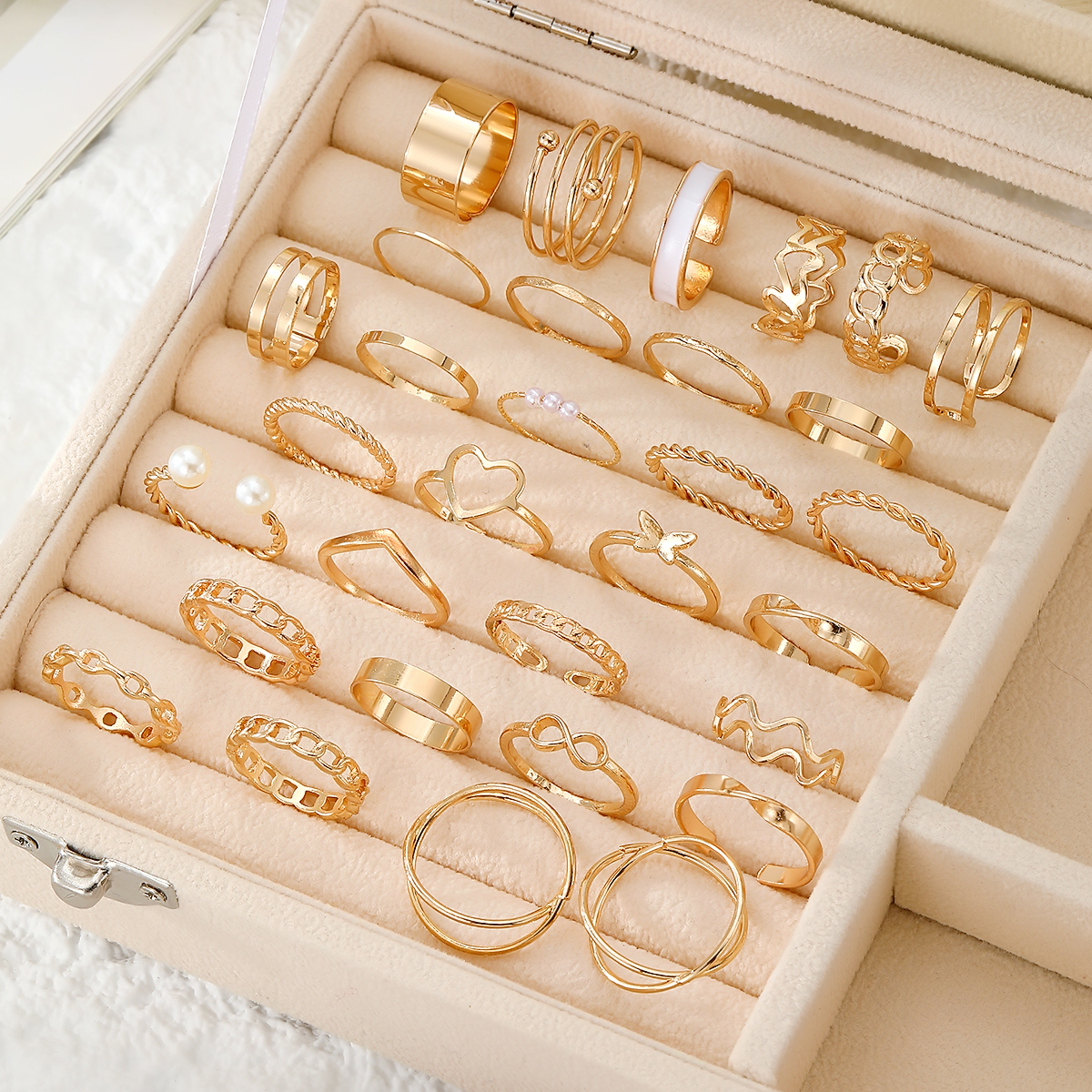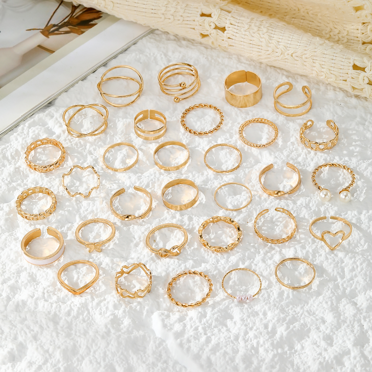 31 peças conjunto de anéis de liga elegantes e delicados com coração, espiral, 8 infinito, feminino, personalidade