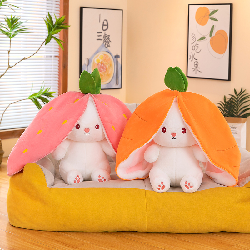 35-48cm Transformado Morango Coelho Boneca Brinquedo De Pelúcia Pequeno Branco Dormindo Cenoura