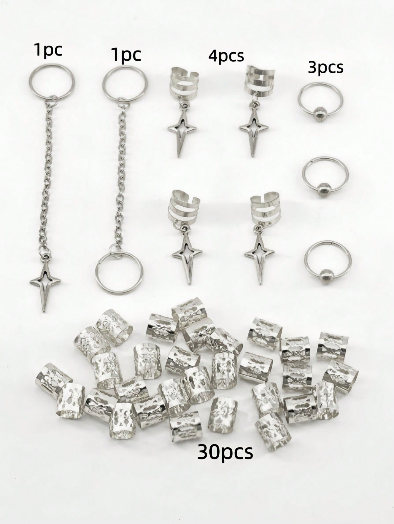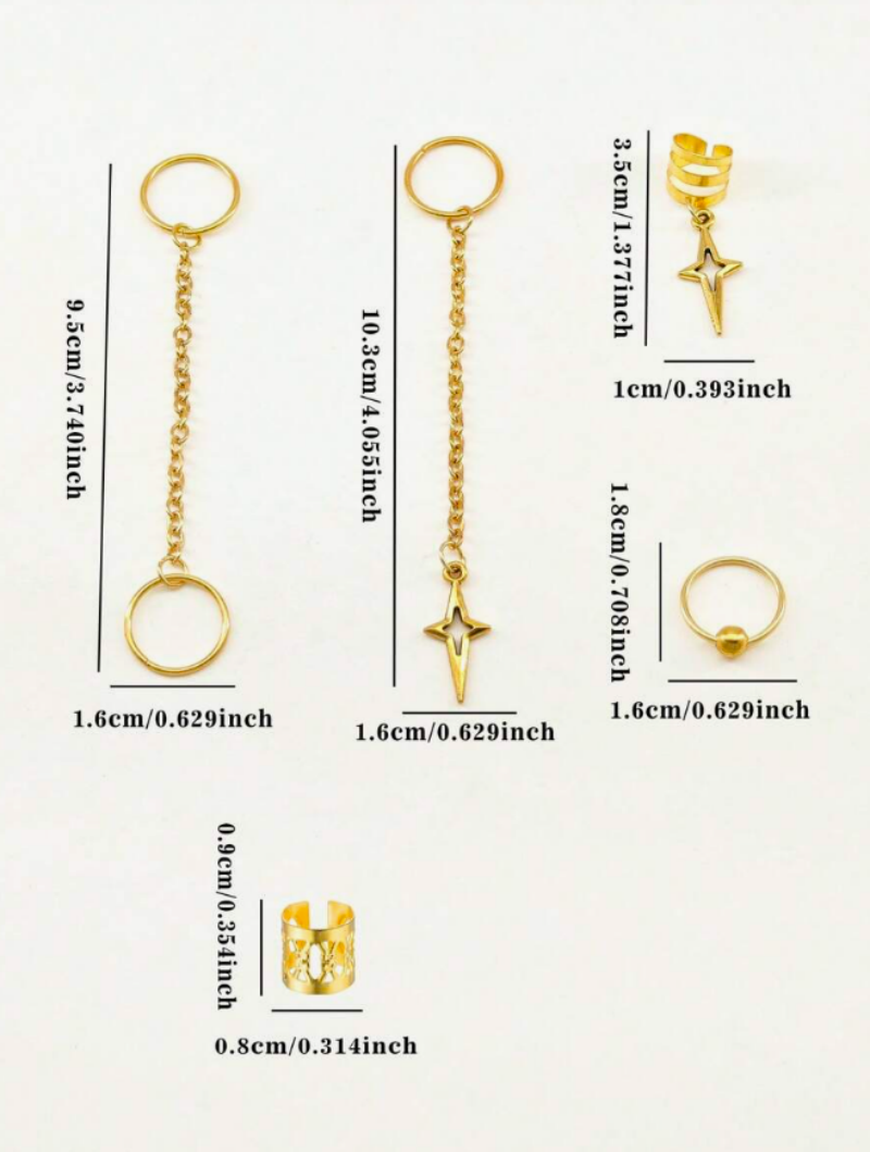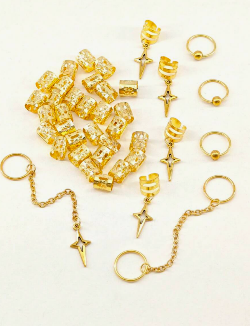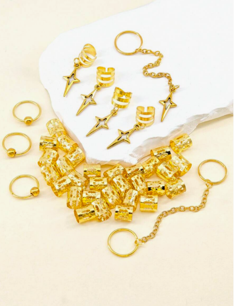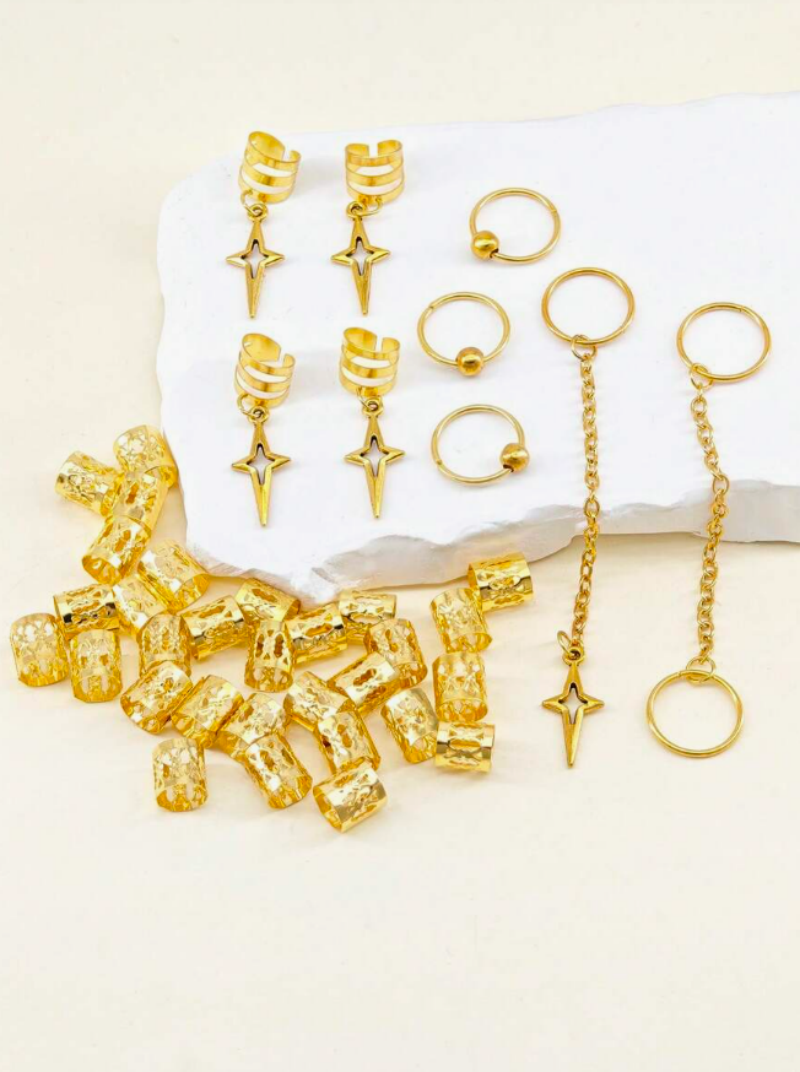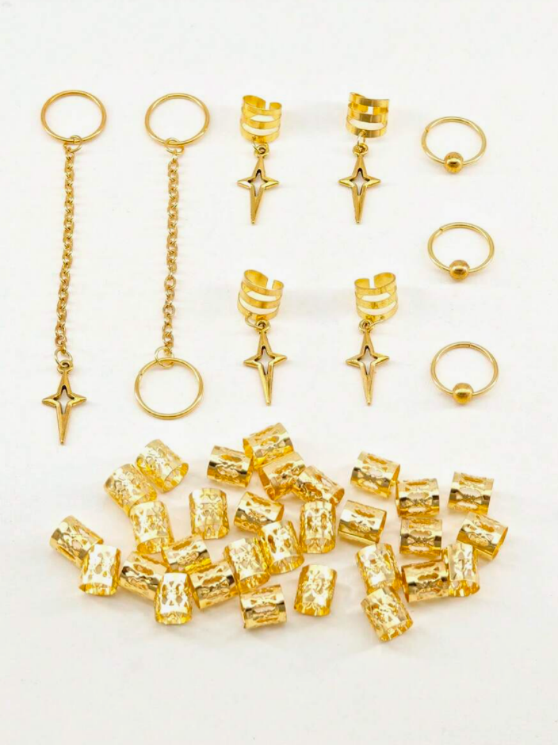 39 Peças Contas De Cabelo Estrela DIY Acessórios Dreadlock Anéis Ocos Decoração De Trança Africana