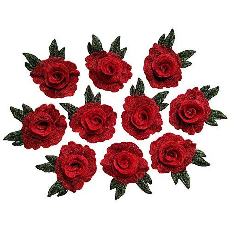 3Pcs Roupas Florais Vermelhas Patch Material De Decoração Sweater DIY Acessórios