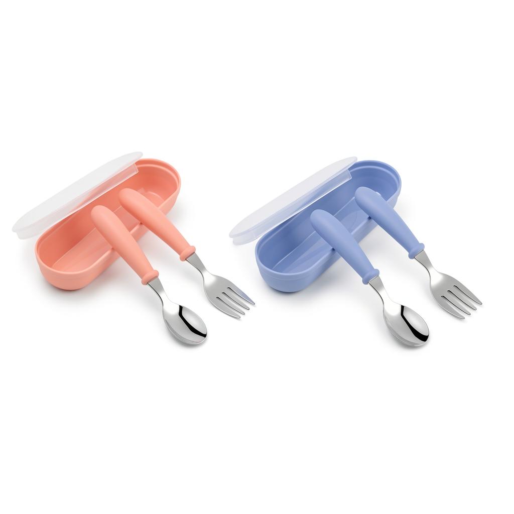 Conjunto De Garfo E Colher De Aço Inoxidável Para Crianças , 3 Peças Com Caixa Portátil , Utensílios De Alimentação Bebê