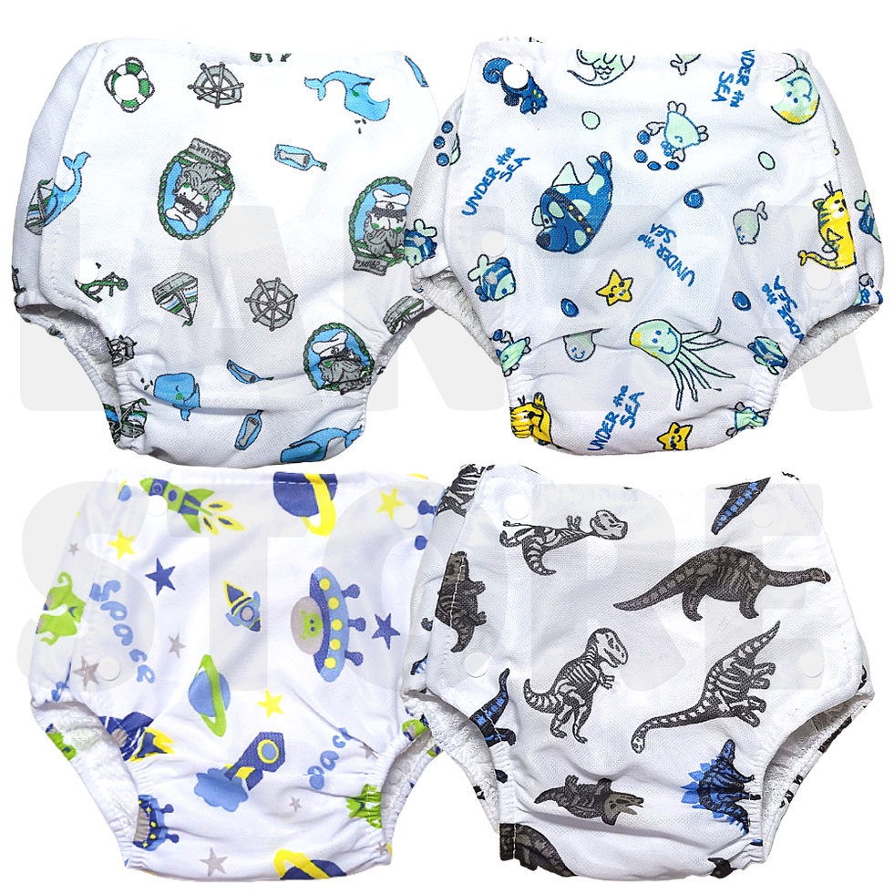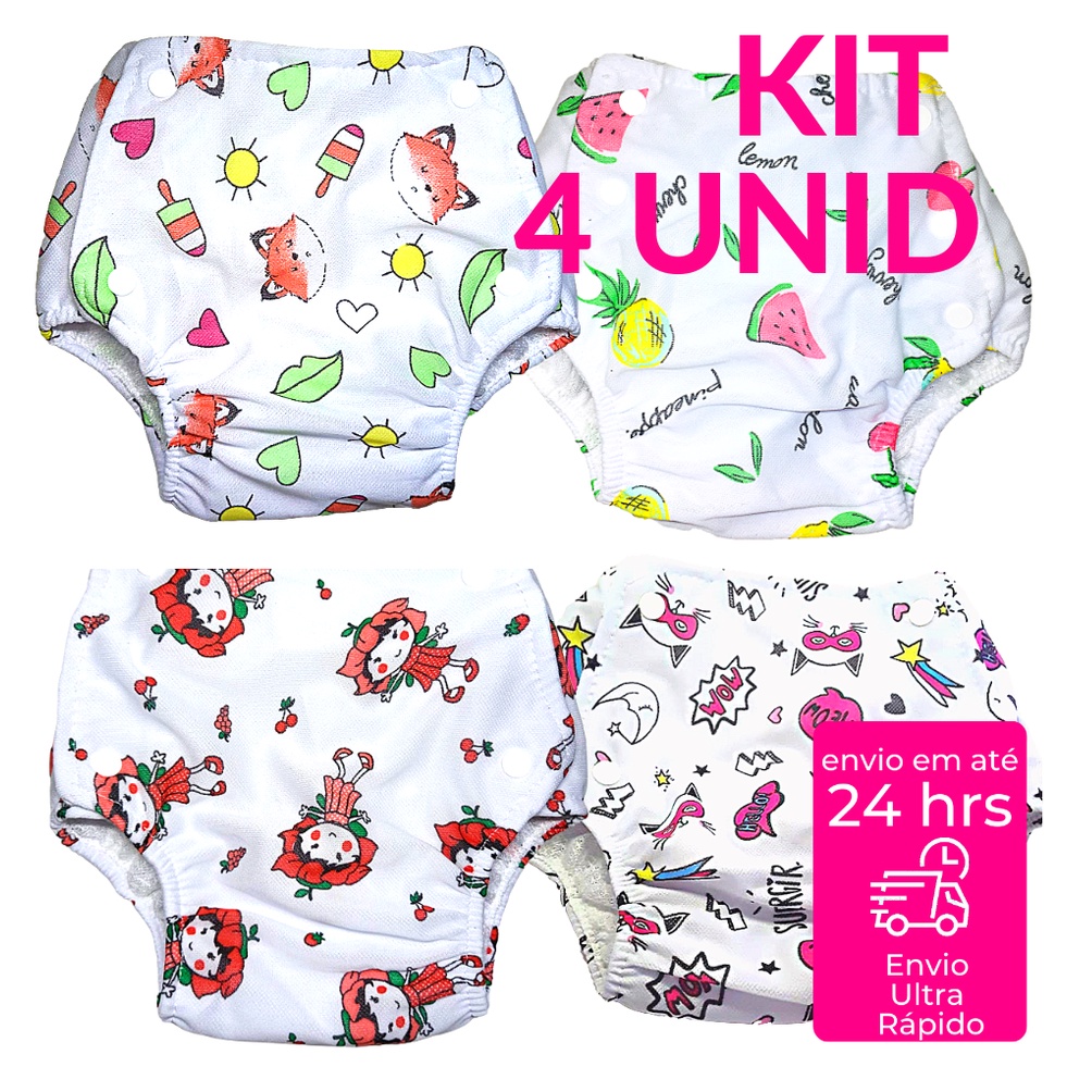 4 Fralda Plástica Calça Enxuta Reutilizável Ecológica Estampada Transição para Bebê Infantil Desfralde