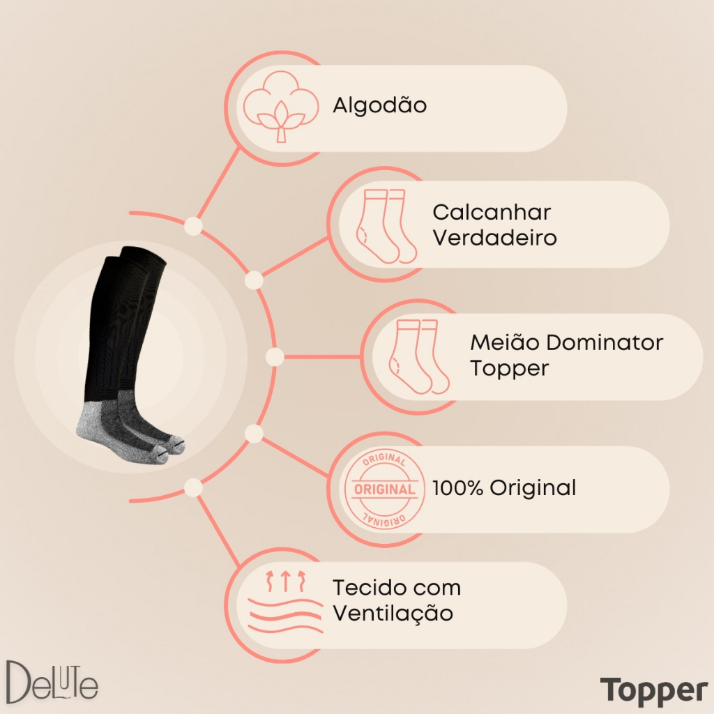 4 Meião Dominator Topper Esportivo Cano Alto Profissional Adulto e Juvenil Resistente e Confortável