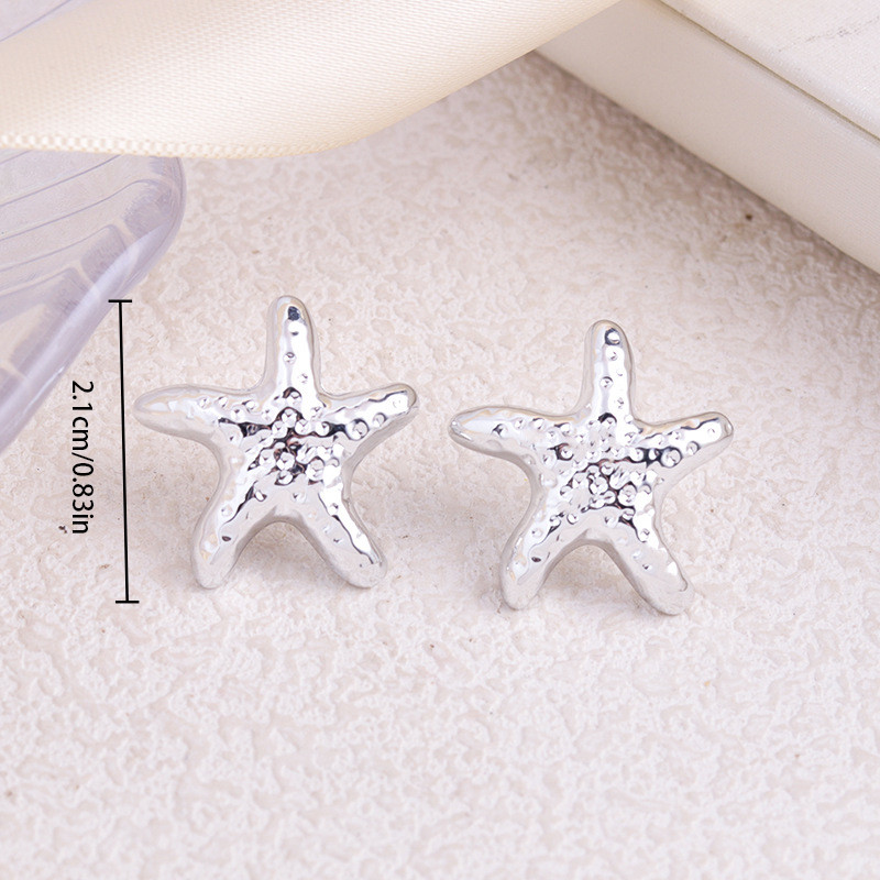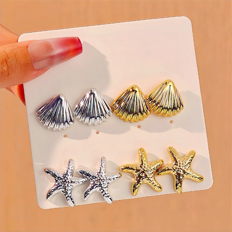 4 Pares de Brincos Fashion Femininos Estrela do Mar e Concha, Conjunto de Brincos Dourados/Prateados para Verão, Joias