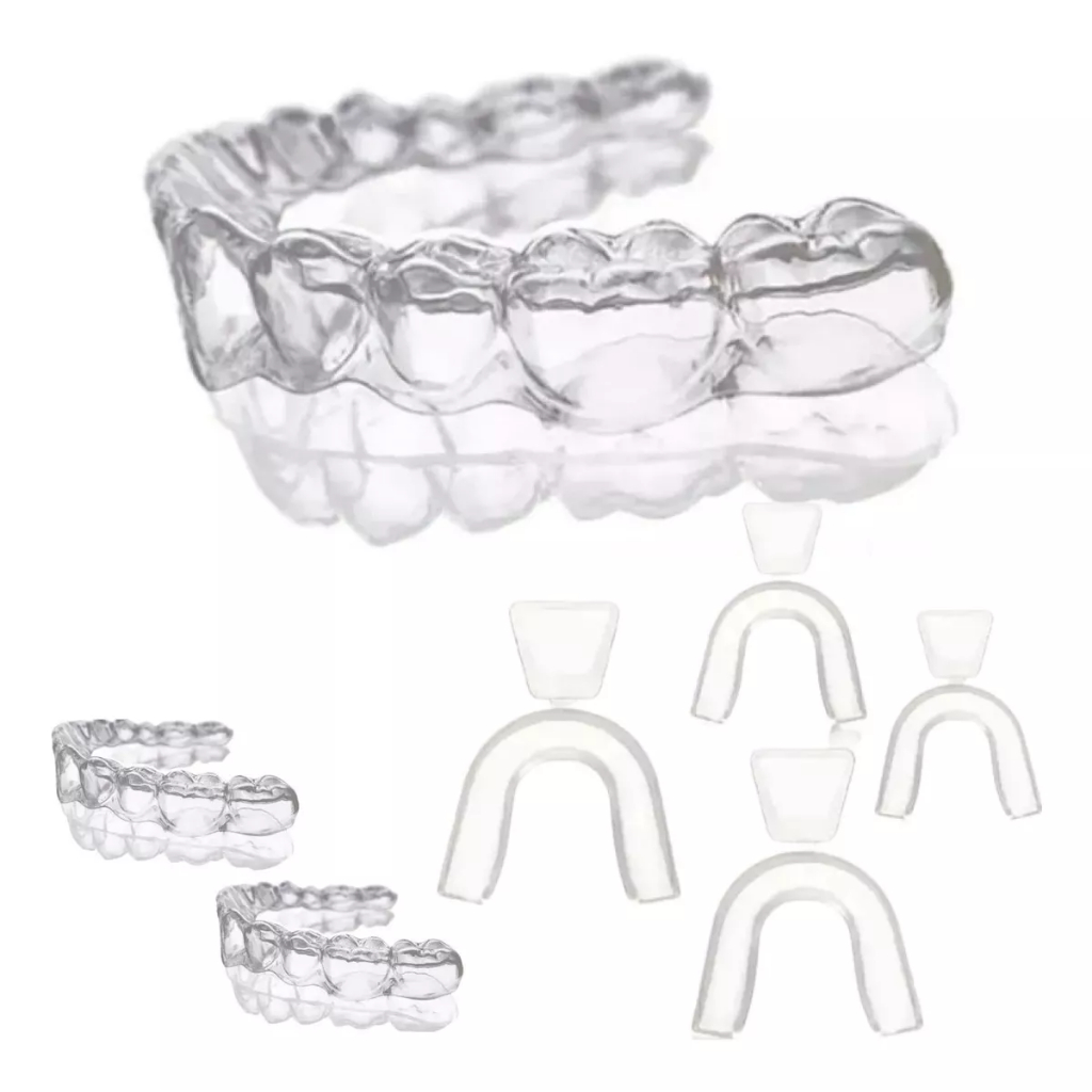4 Placa de Bruxismo Silicone Moldável Aparelho Inferior e Superior e Estojo