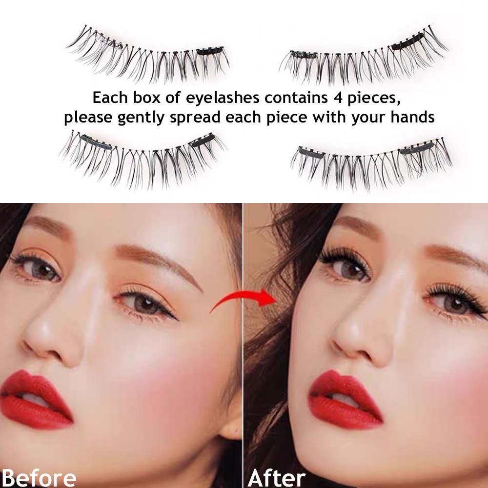 4 Unidades (1 Par) Cílios Postiços Clipe 3D Magnético Reutilizáveis À Prova D'água Sem Necessidade De Cola