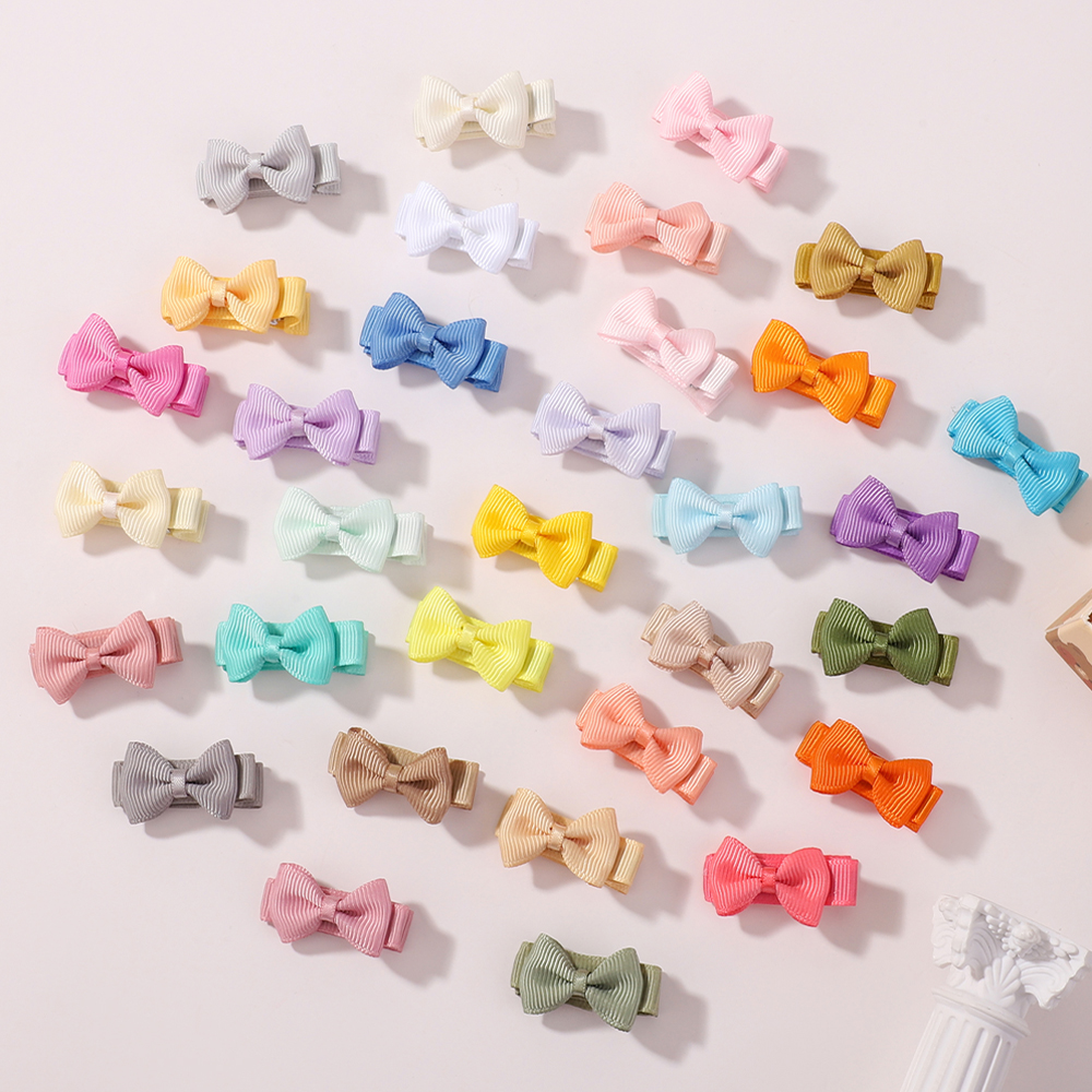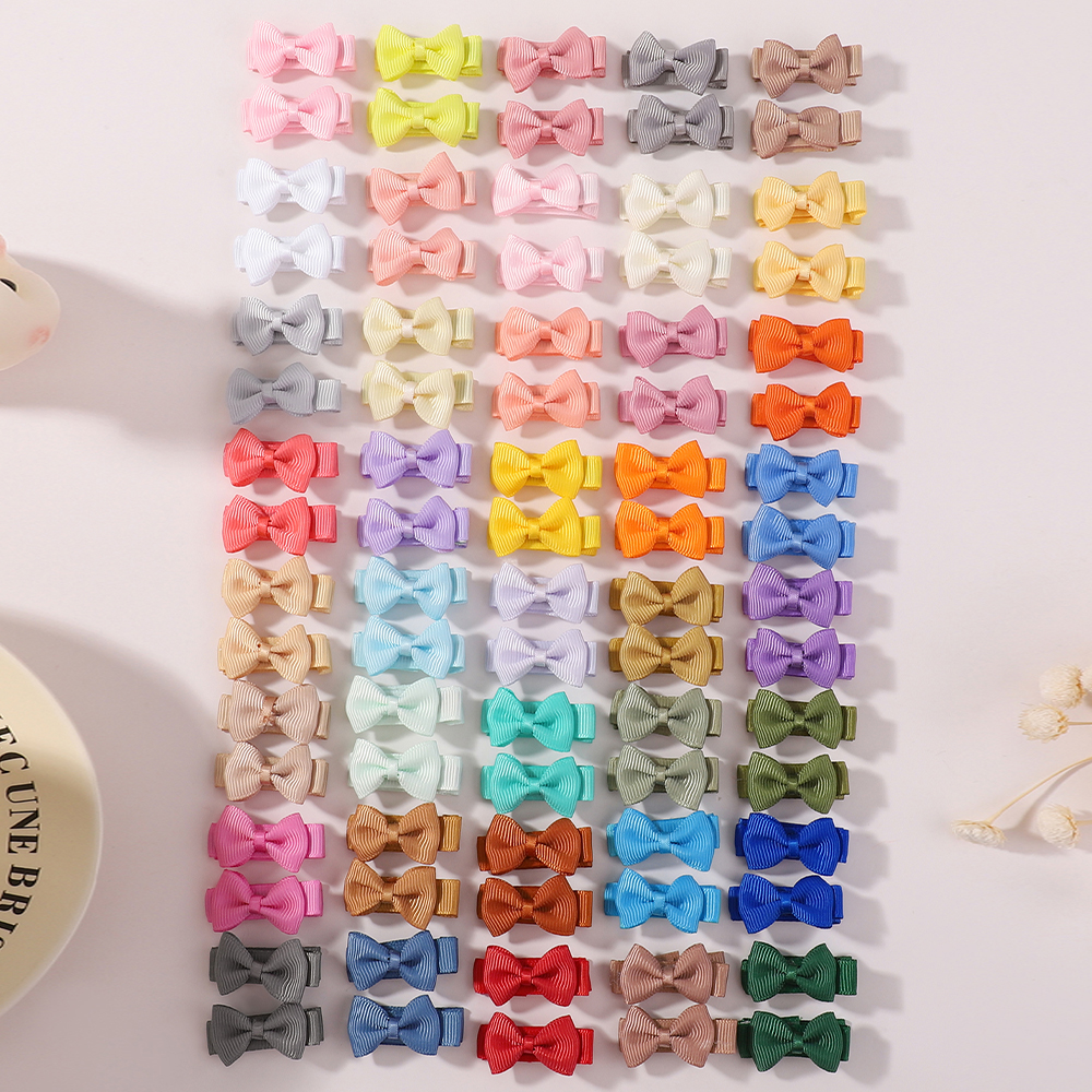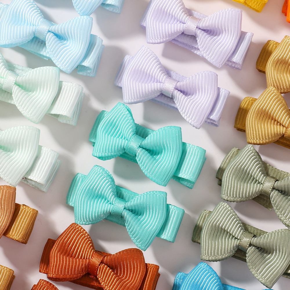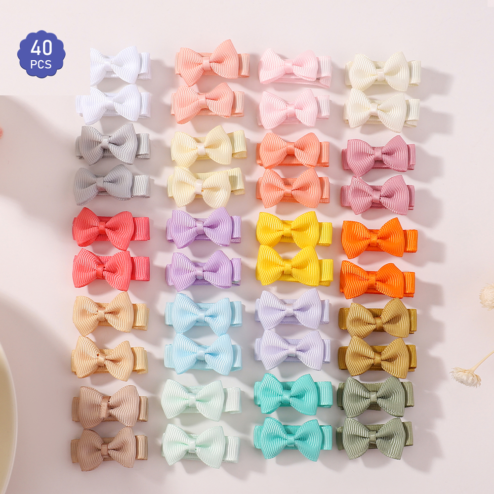 40Pç Mini Laço de Fita Colorido com Laço de Cabelo Estampado para Meninas, Fofo com Laço, Antiderrapante, Presilha de