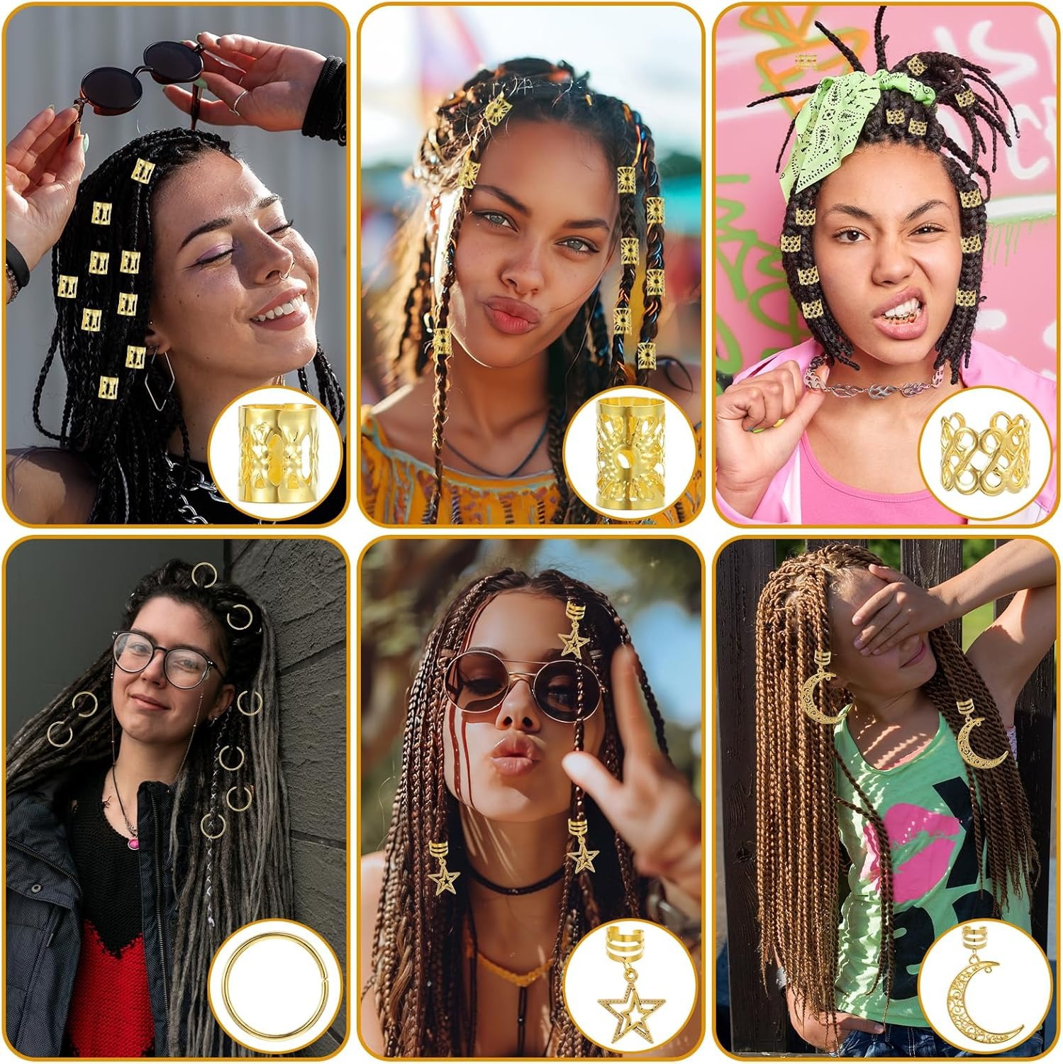 45PCS trança suja peruca anel de cabelo estrela e lua galvanoplastia prata dourada oca acessório de cabelo combinação