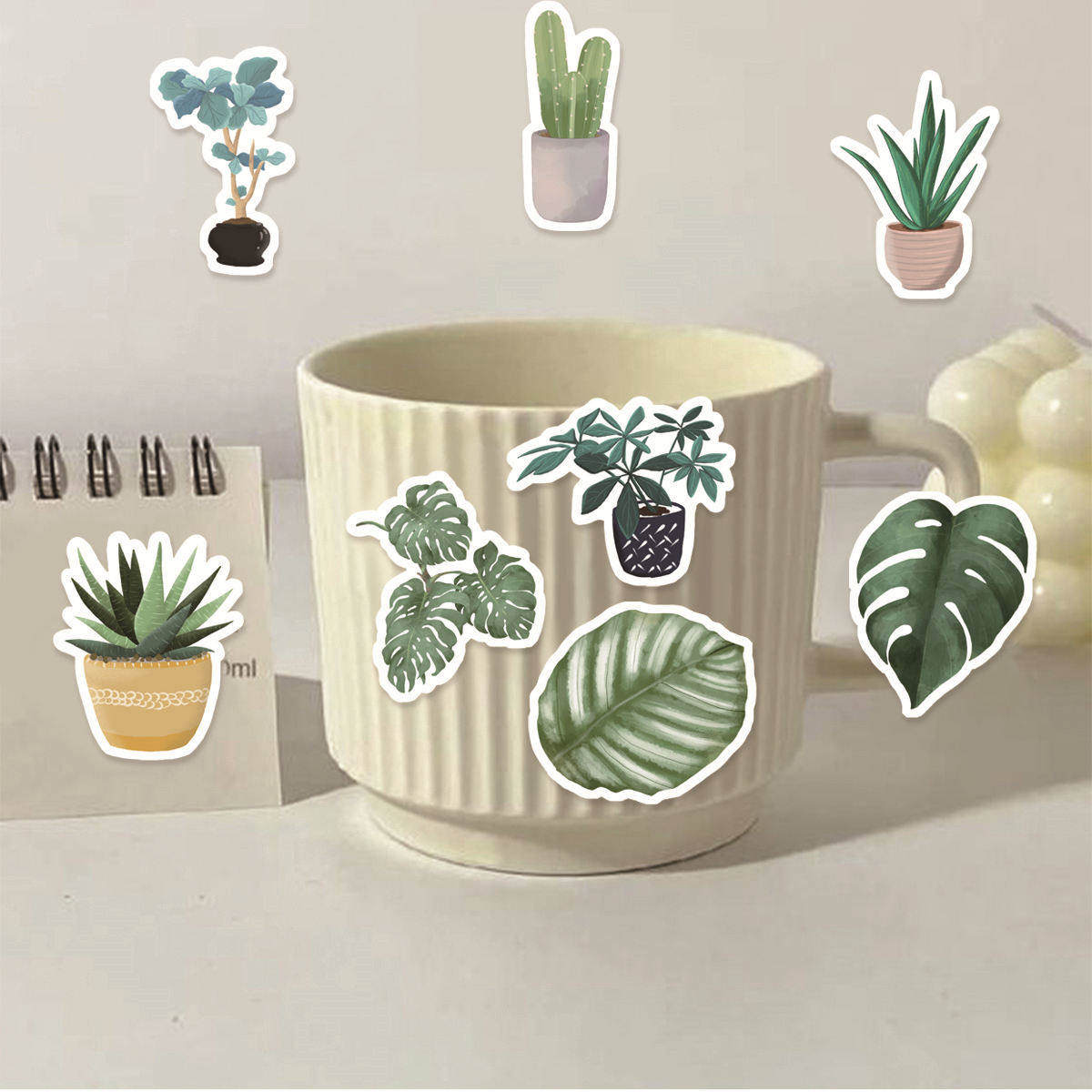 46pcs Adesivos de Cacto e Aloe Vera para Decoração de Papelaria Estudantil e Copos