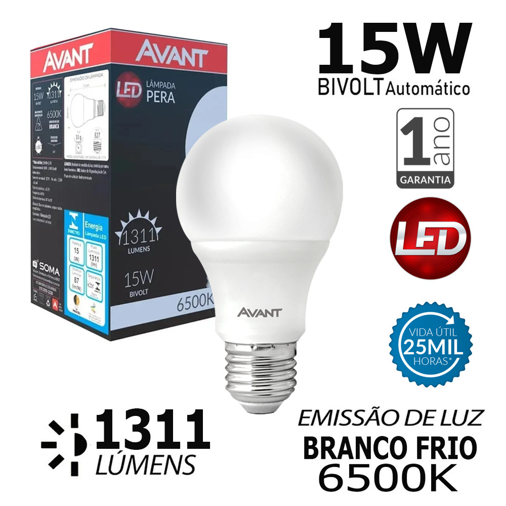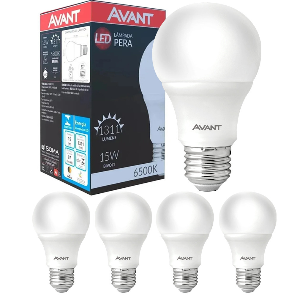 5 Lampada Led Pera 15w Bulbo Soquete E27 Bivolt Branco Frio