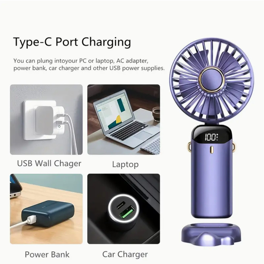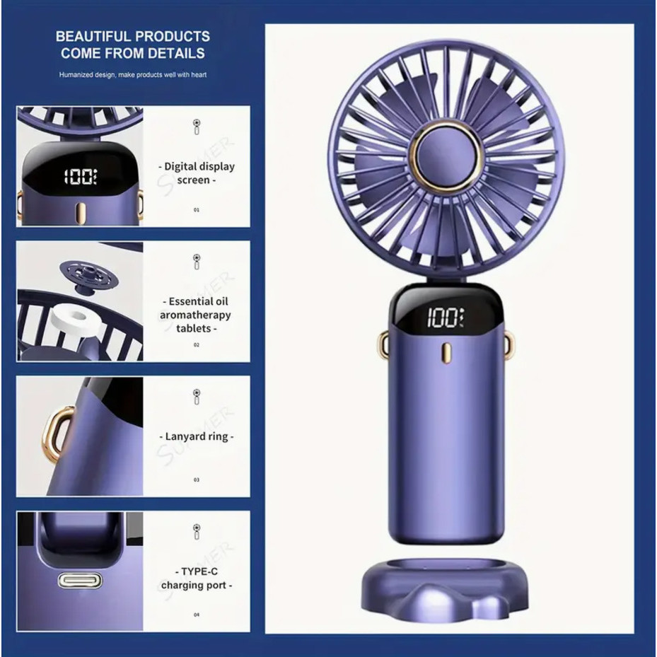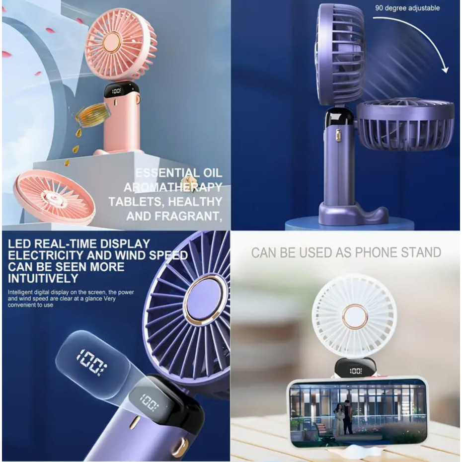 5 Modos De Ventilador Portátil mini Pequeno Dobrável digital De Escritório Presente USB De 3000MA