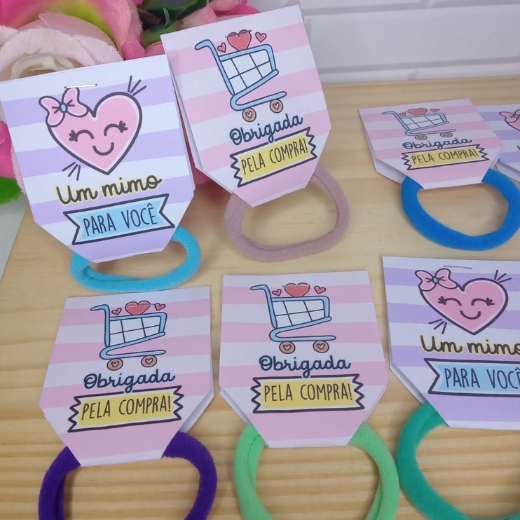 50 Amarradores de Cabelo- Xuxinhas Personalizadas com Tag para Clientes, Brinde, Empresa