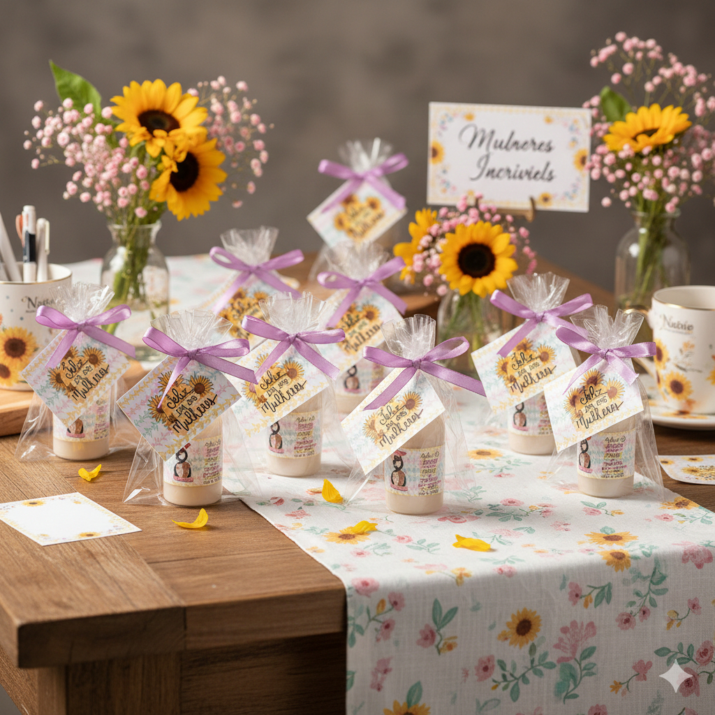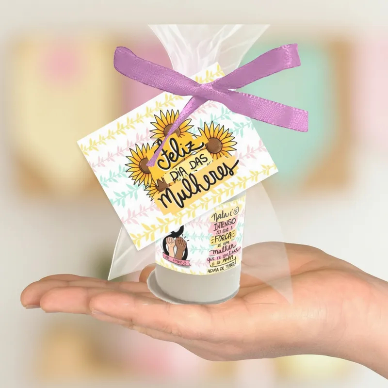 50 Mini Hidratante Lembrancinha dia da Mulher Girassol