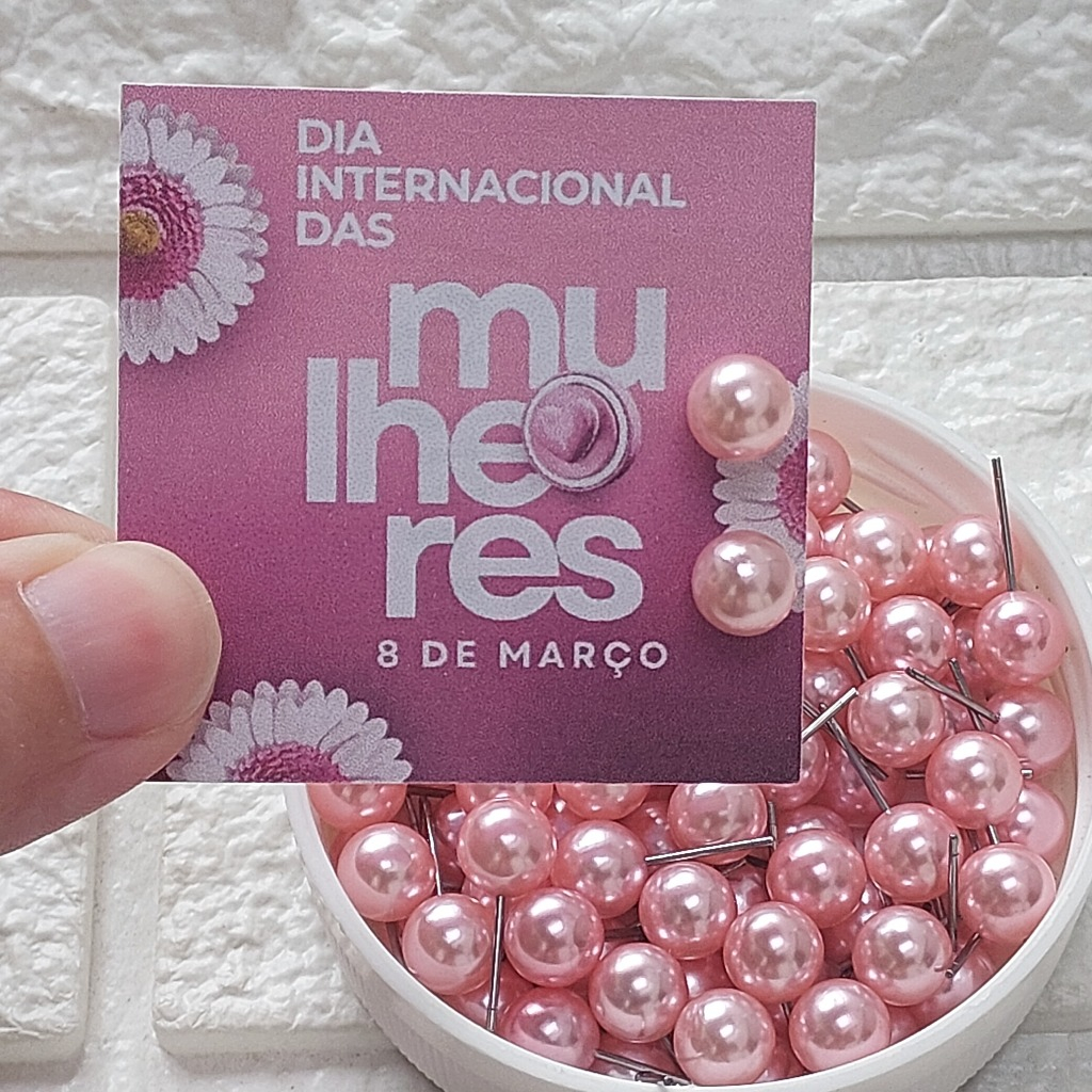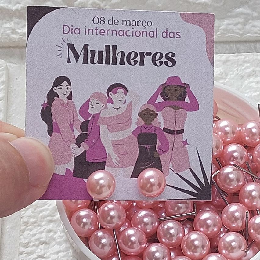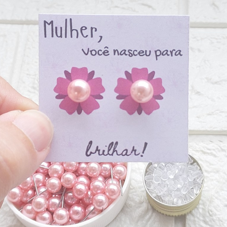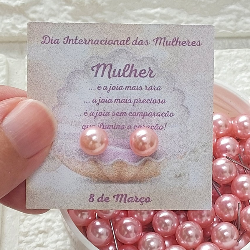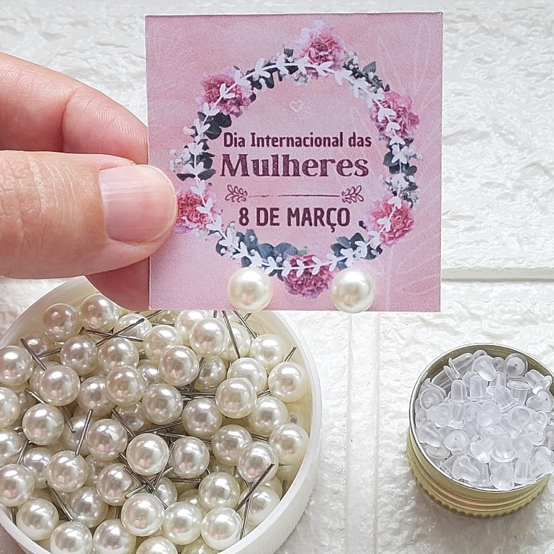 50 Pares Brincos + Tag Dia da Mulher Brinco de Perola 8 de Março Mimo Clientes