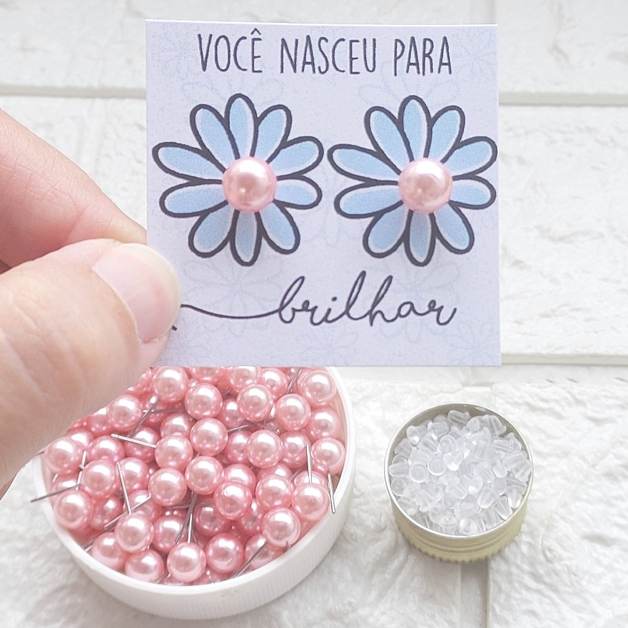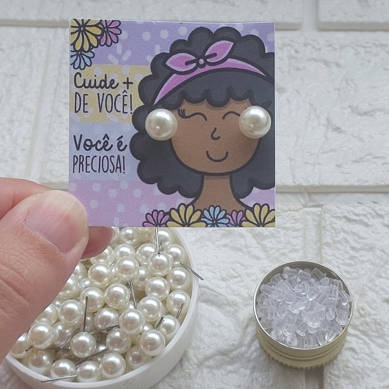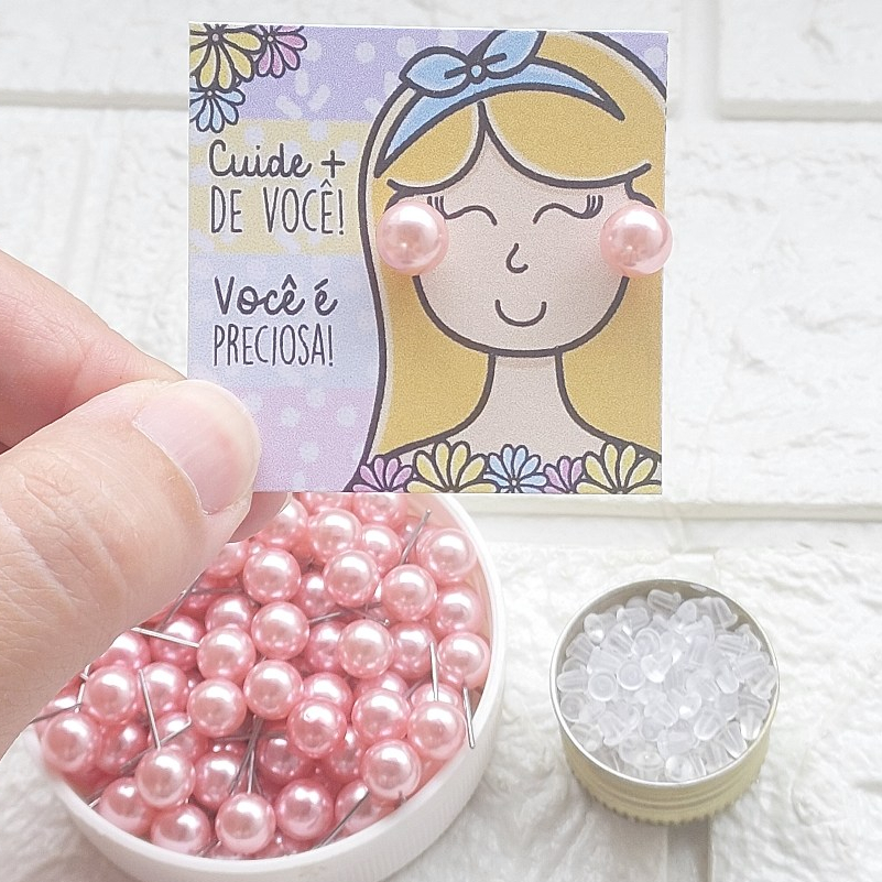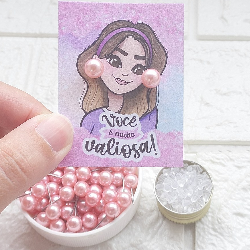 50 Pares Brincos + Tag Dia da Mulher Brinco de Perola 8 de Março Mimo Clientes