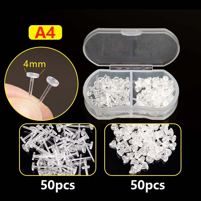 50 Pares De Brincos De Plástico Transparente Para Novos Piercings , Pinos Invisíveis Hipoalergênicos Com Estojo