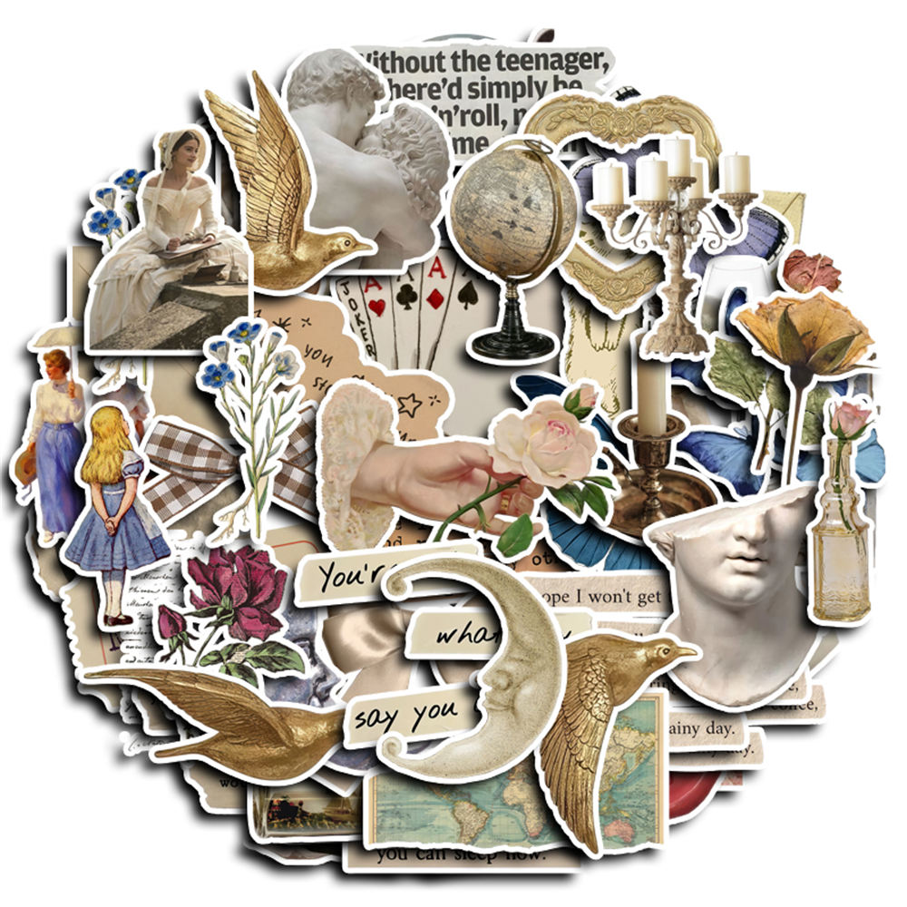 50 Peças De Adesivos De Arte Retrô-Decalques Washi DIY Para Laptop , Scrapbooking E Artesanato