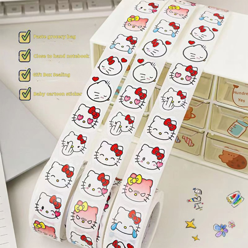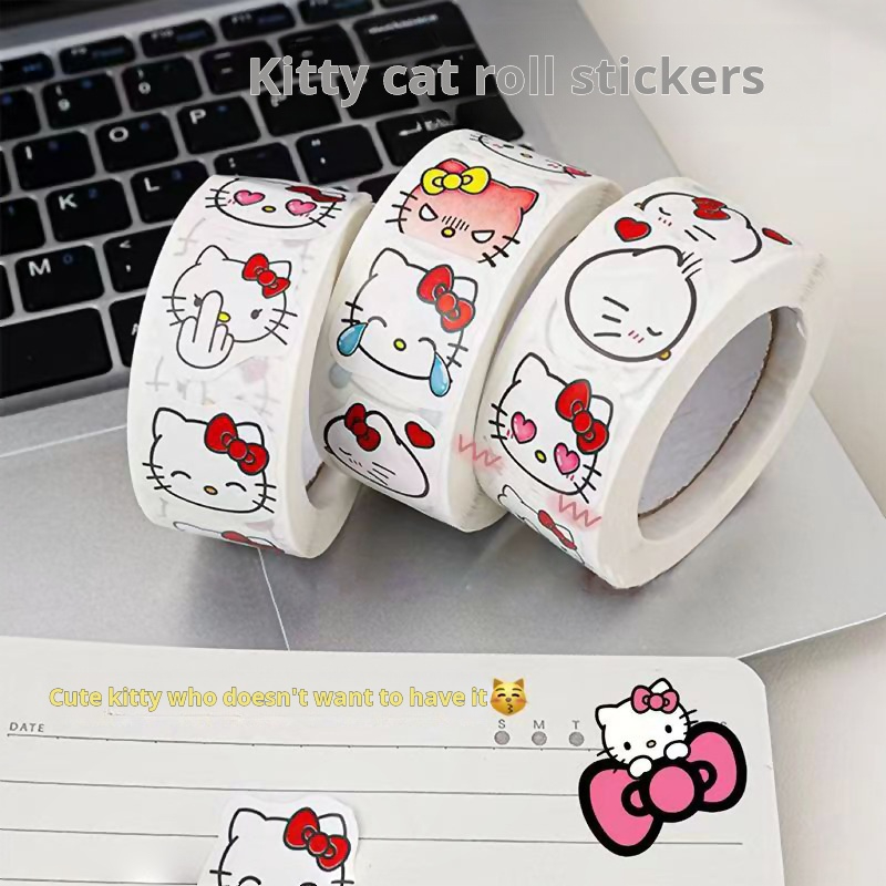 500 Peças Rolo De Adesivo De Gato De Desenho Animado Fofo , Adesivos De Vedação Decorativos Kawaii Para Diários E Presen