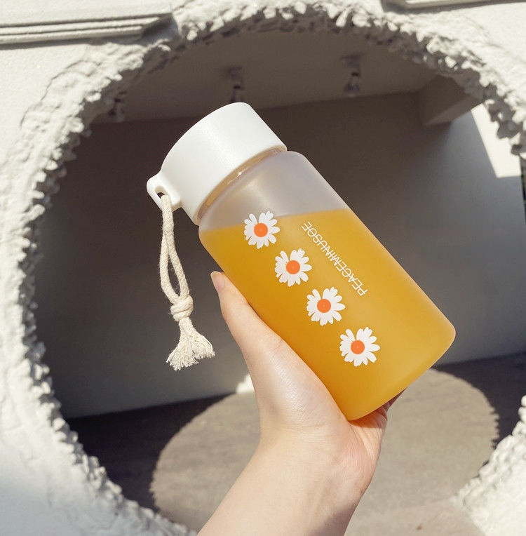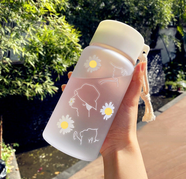 500ml Pequena Margarida Garrafas De Água De Plástico Transparente BPA Livre Criativo Fosco Garrafa Com Portab le Corda V