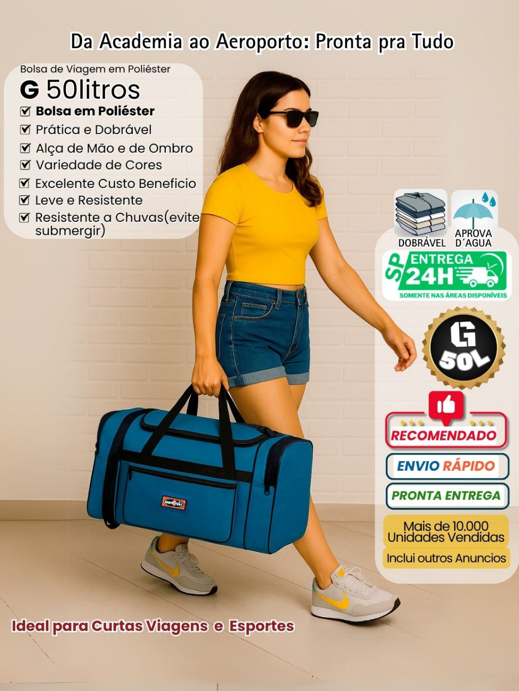 50L - Bolsa de Viagem Grande "G" GabySport - 50L | Dobrável, Leve, Resistente | Envio Rápido
