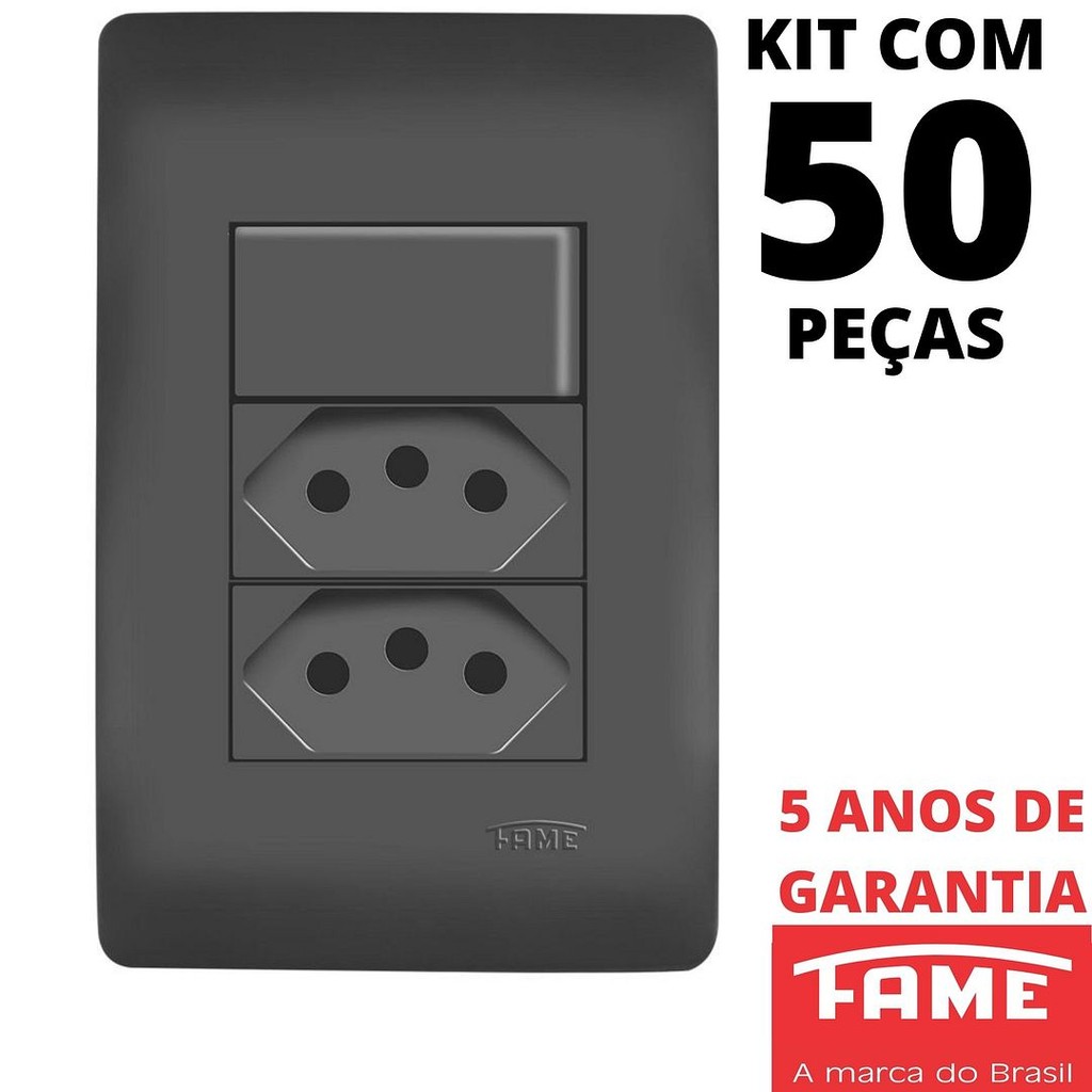 50un Interruptor Simples 10A e Tomada Padrão Dupla 2P+T 10A Com Placa Habitat Black FAME
