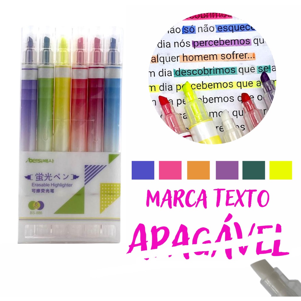 6 Canetas Marca Texto Apagável