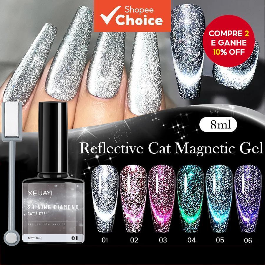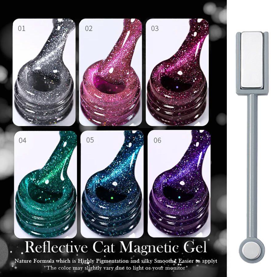 6 Cores 8ml Brilho Reflexivo Olho De Gato Gel Esmalte , Brilhante , Embeber LED UV-Perfeito Para Arte Em Unhas DIY Casa