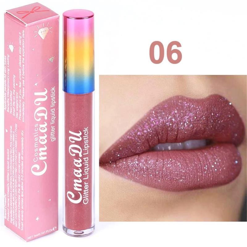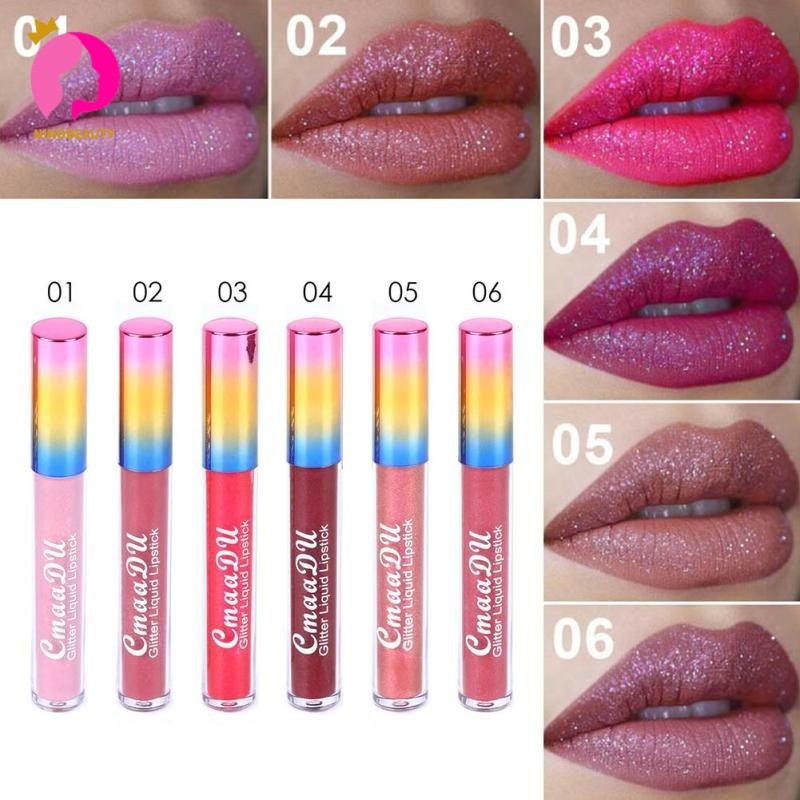 6 Cores Batom glitter Diamante metal mate