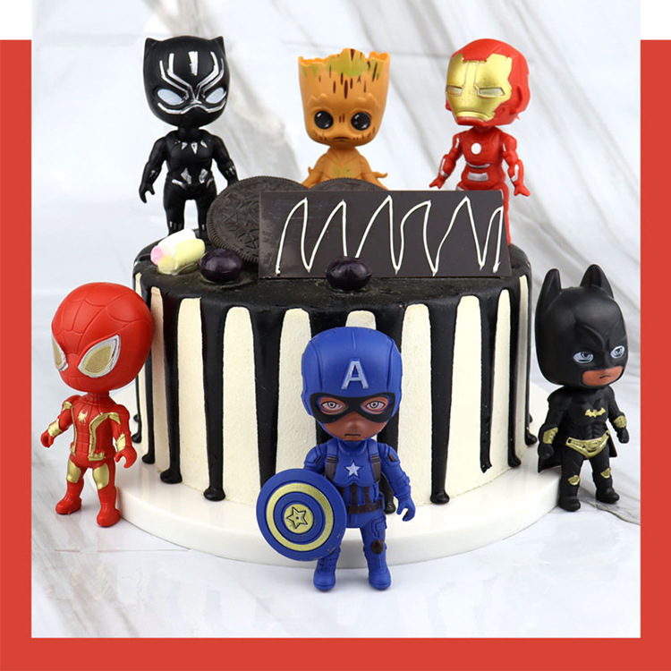 6 PCS Vingadores Decoração De Bolo De Aniversário Homem-Aranha , Batman , De Ferro Ornamento