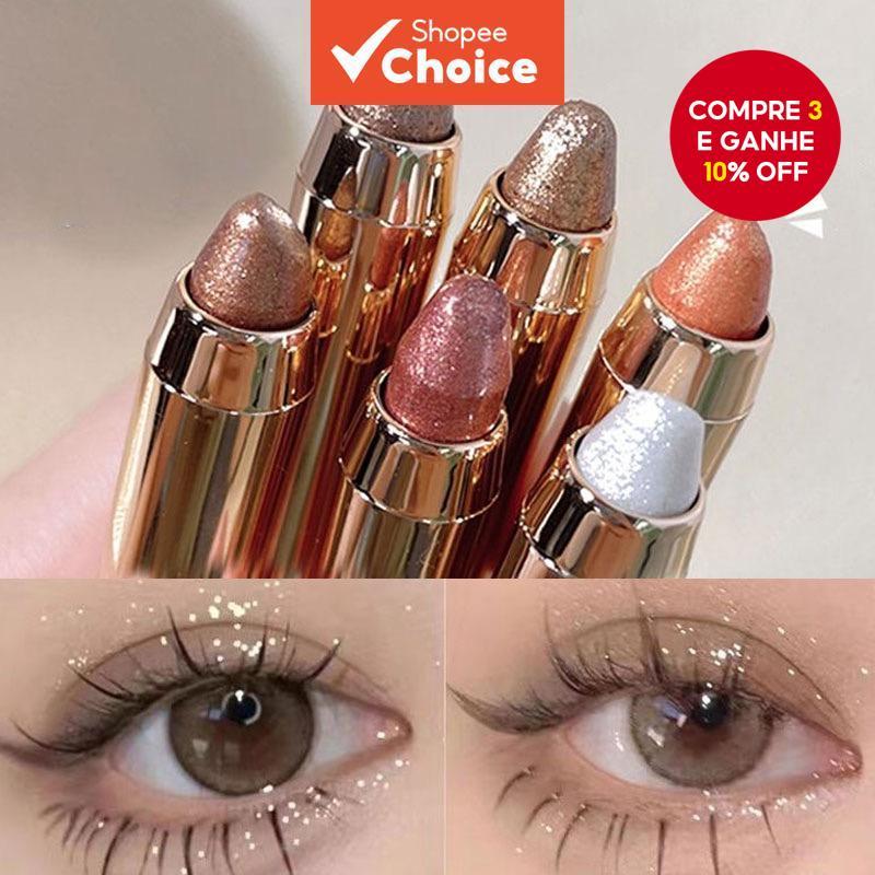 6 Peças 2 Em 1 Glitter Sombra E Caneta Iluminadora-Design De Bicho-Da-Seda Preguiçoso De Ponta Dupla Para Maquiagem Rápi