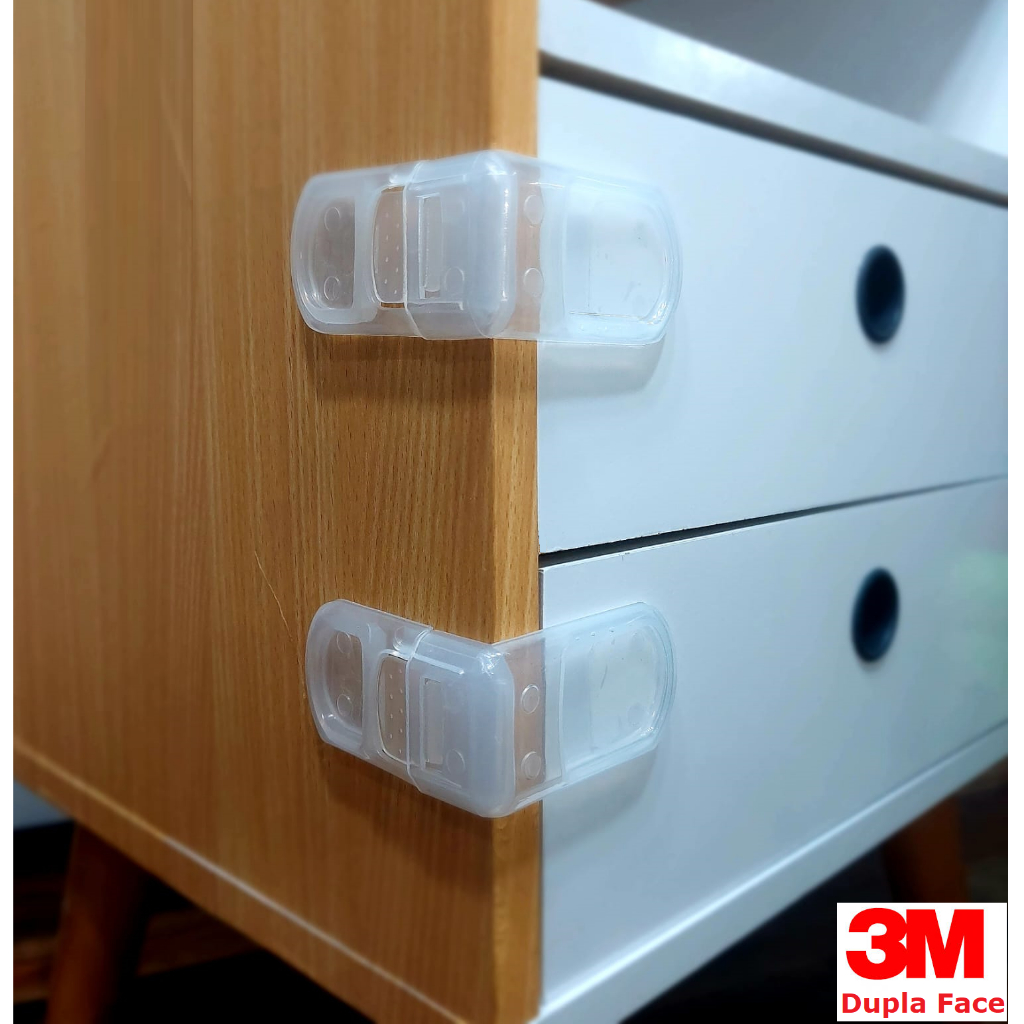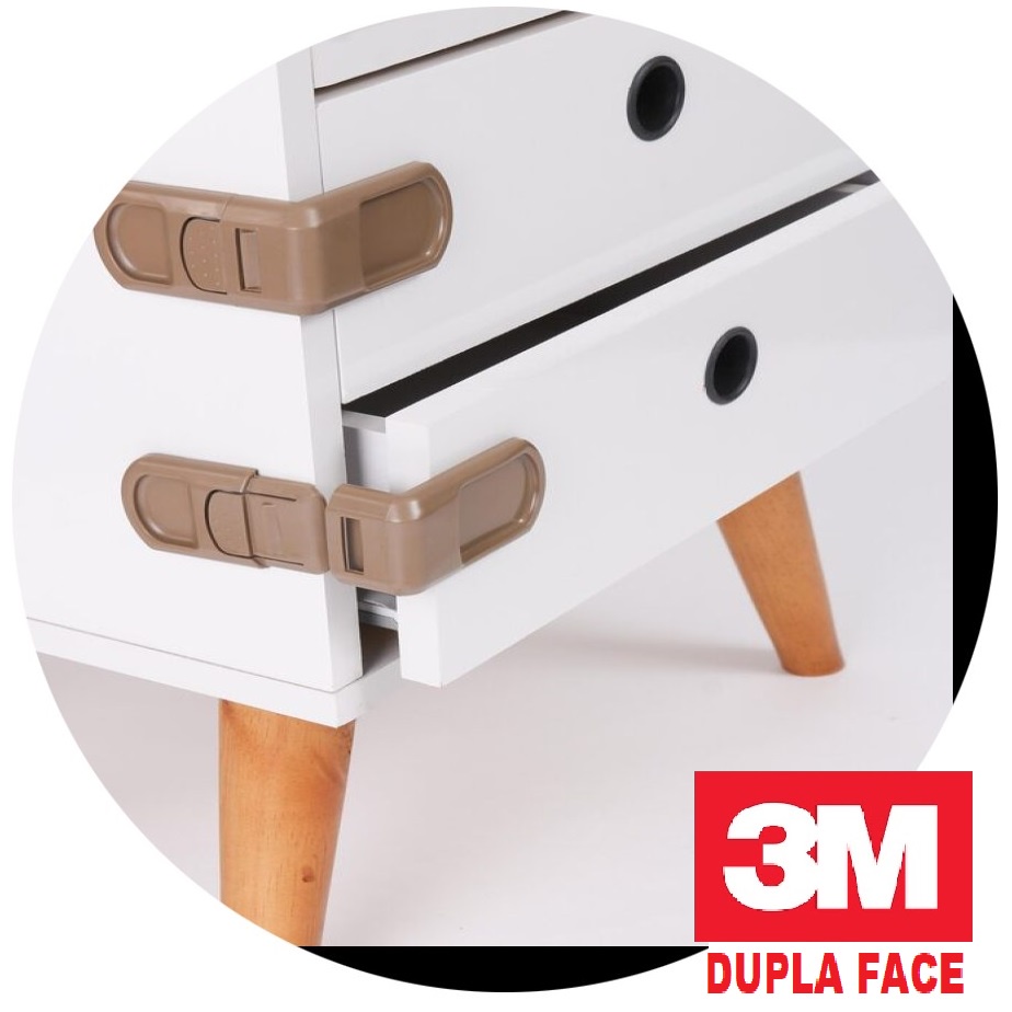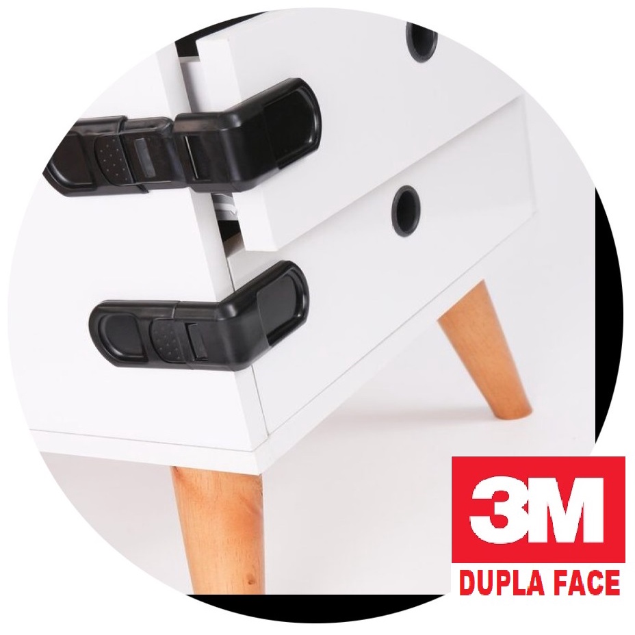 6 Travas de Gaveta Lateral Segurança Bebê - Adesivo 3M VHB