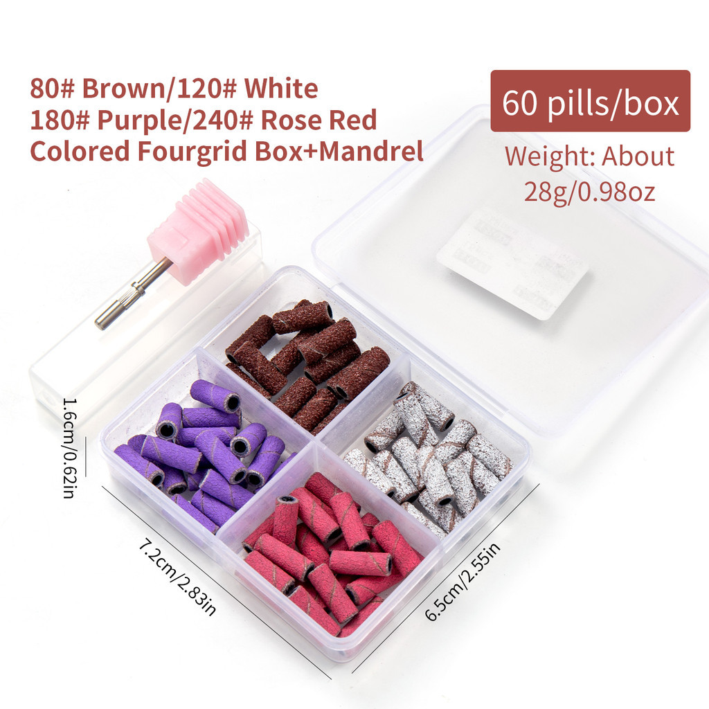 60 Peças 3.1mm Mini Brocas De Mandril Para Lixar Unhas 120 240 Finas Acrílicas Gel Manicure