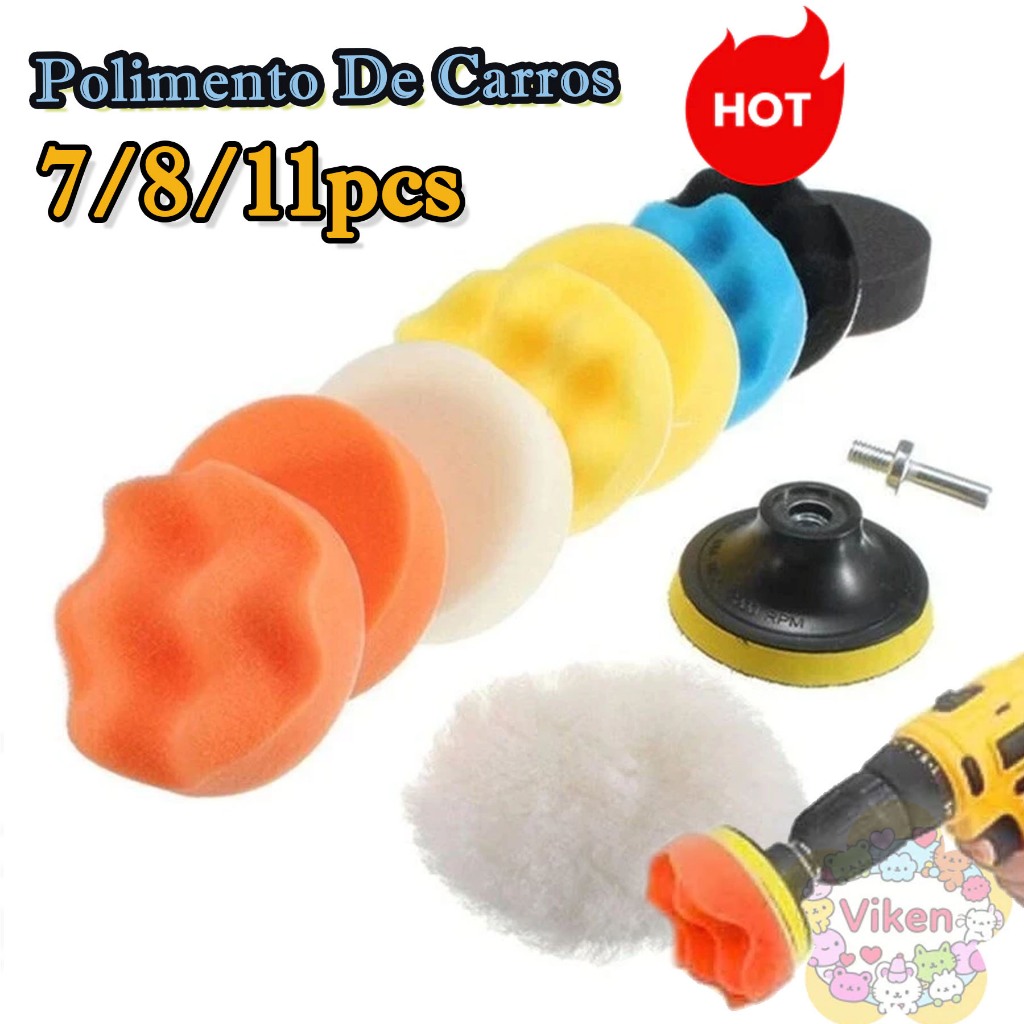 7/8/11 Peças Kit Boina Polimento Automotivo Espuma e Lã 3 Polegadas para Furadeira e Parafusadeira