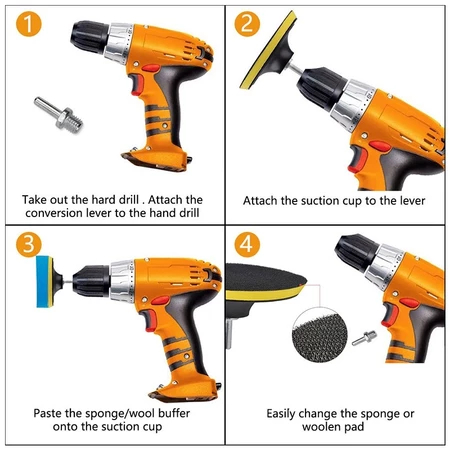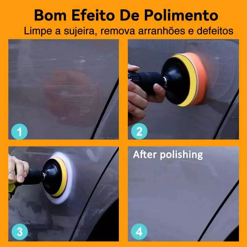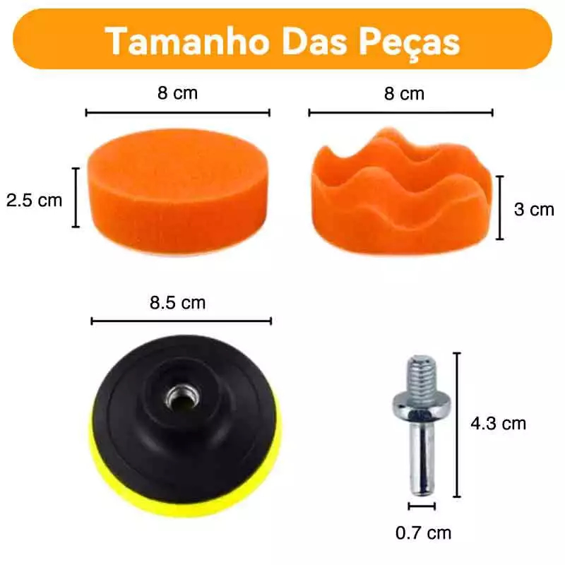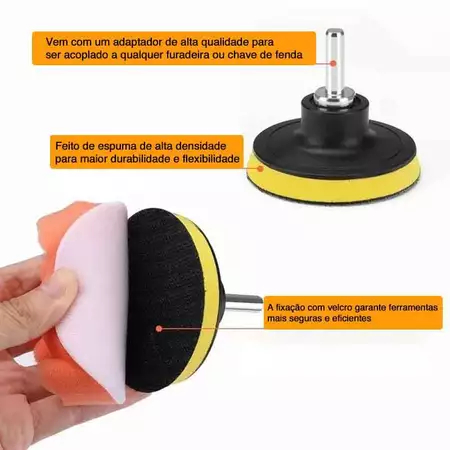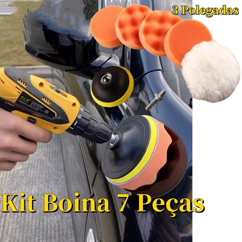 7 Peças Kit Boina Polimento Automotivo Espuma e Lã 3 Polegadas para Furadeira e Parafusadeira