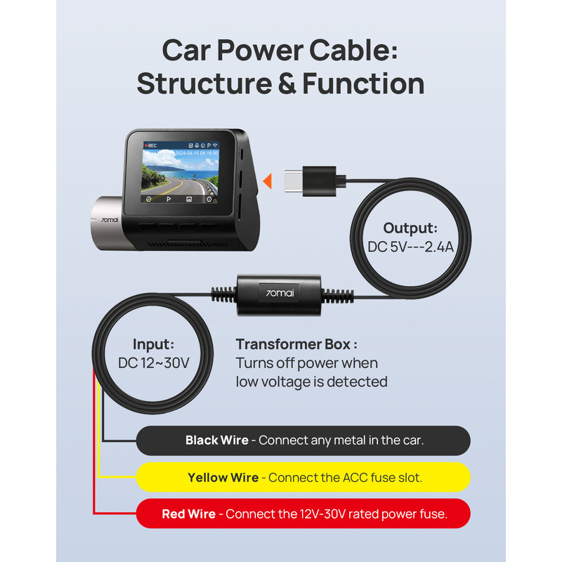 70mai Hardwire Kit Up03 Tipo C Vigilância de Estacionamento 24h Proteção Contra Baixa Tensão Para M310/a800se/a200 Etc