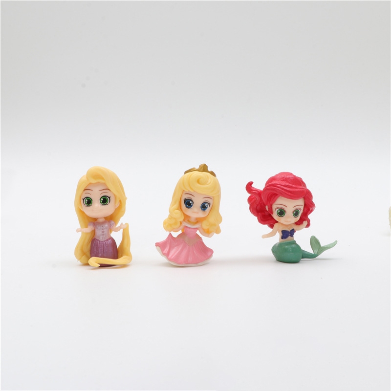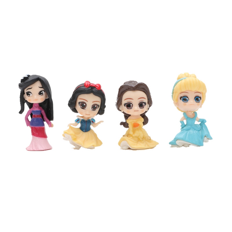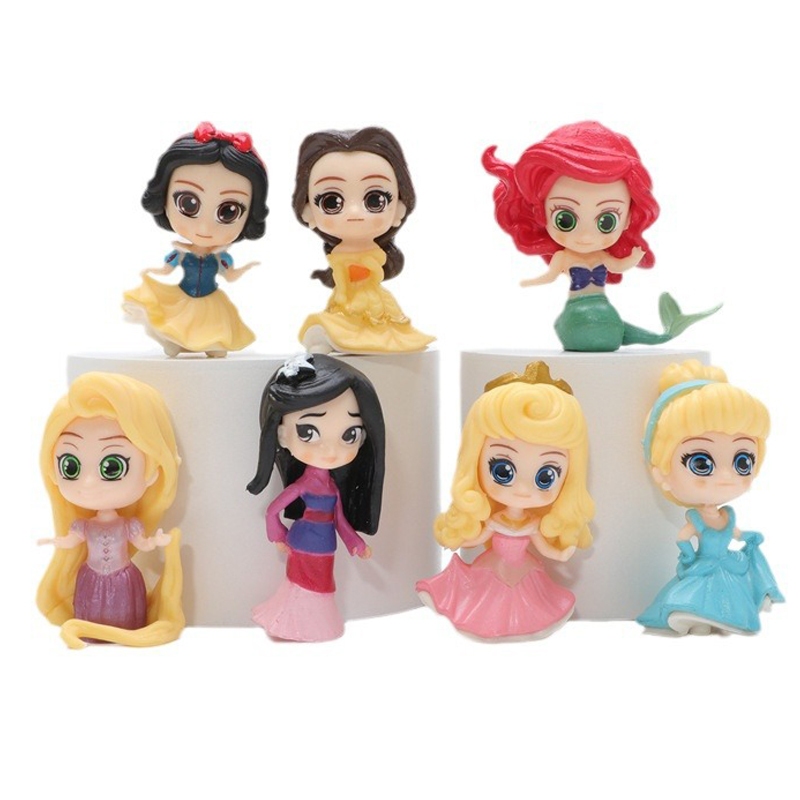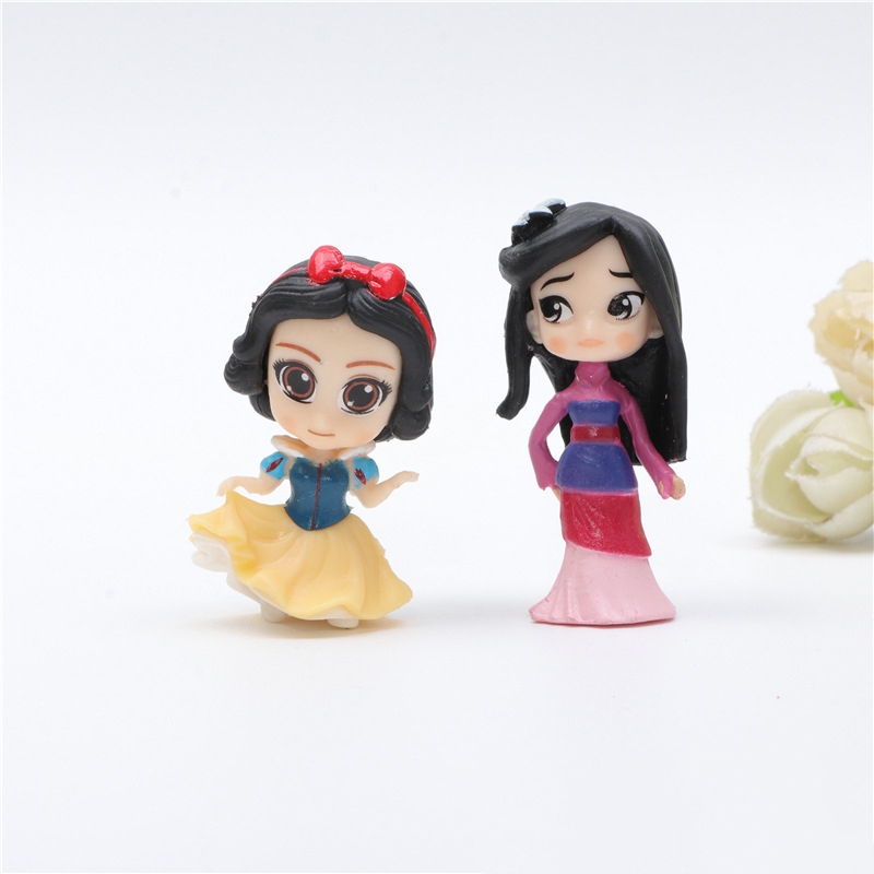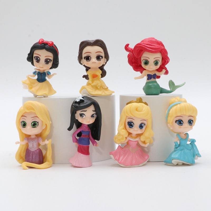 7Pcs/Set 4,5-5cm Disney Princesa Branca De Neve Mulan Rapunzel Aurora Cinderela Ariel Belle Q Versão PVC Figuras De Ação Modelo Doll Toys
