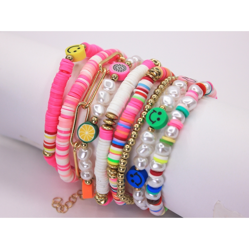 7pcs/set Pulseiras Boêmia Elásticas/ bracelete feminino de Praia/Colorido Conjunto de Pulseira Acessórios de Mão Luxo