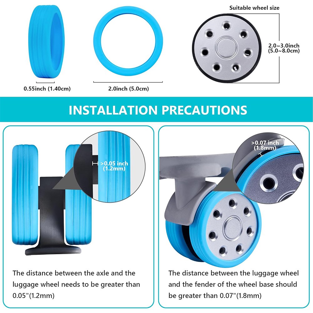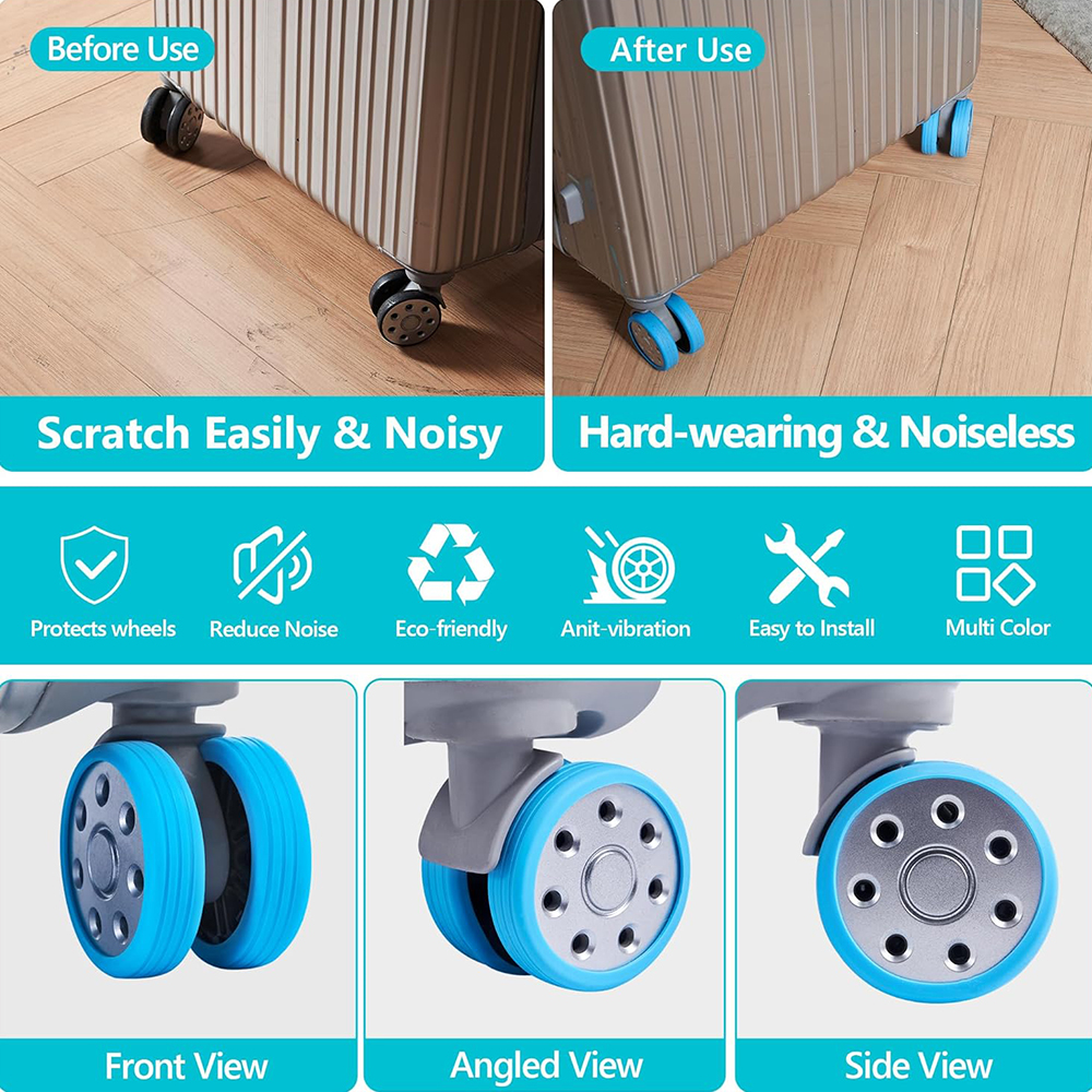 8 Capas Para Rodas De Bagagem De PC : Protetores De Borracha Silenciosos Viagens Suaves , Antiderrapantes E Resistentes