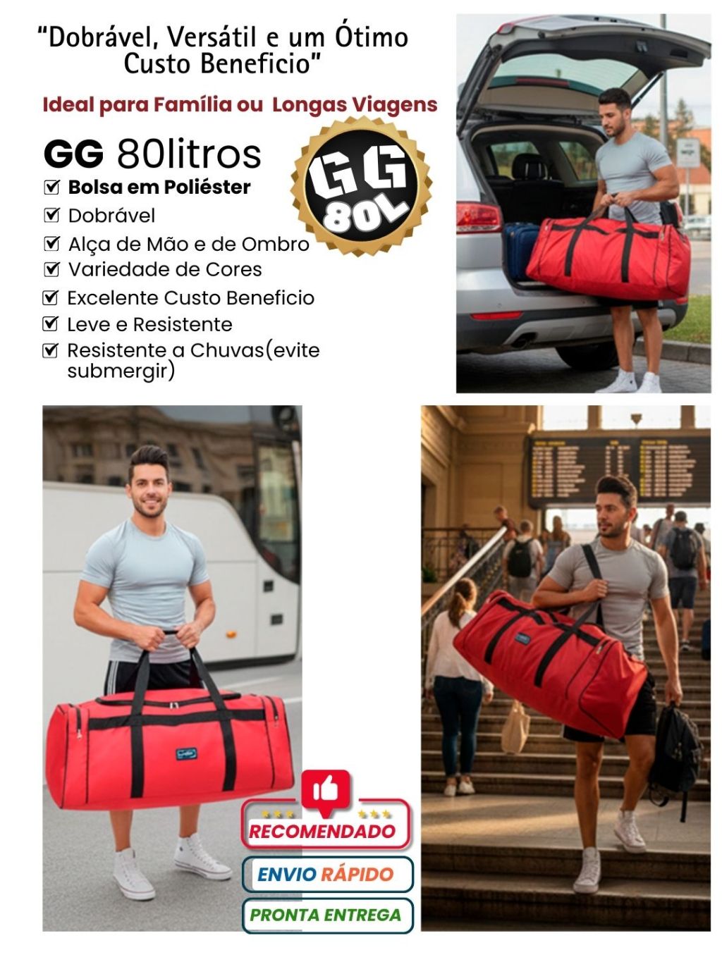 80L - Bolsa De Viagem - Bolsa Sacola de Viagem GG Extra Grande - Mala de Viagem Tiracolo e de Mão