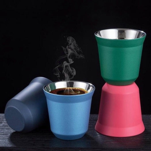 80ml Double Stainless Steel Cup for Nespresso Pixie Coffee Cup Anti-Scald Small Cup