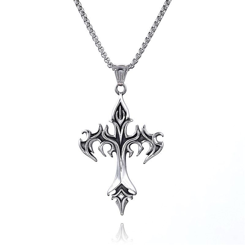 Aço Inoxidável Hip Hop Colar Chama Cruz Pingente Gótico Corrente Jóias Masculino Feminino