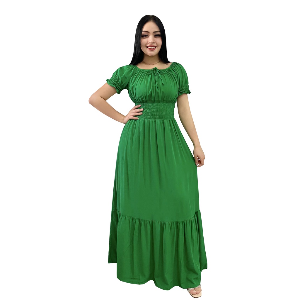A&D Vestido Longo De Viscolinho Festa Liso Tem Forro Com Elástico