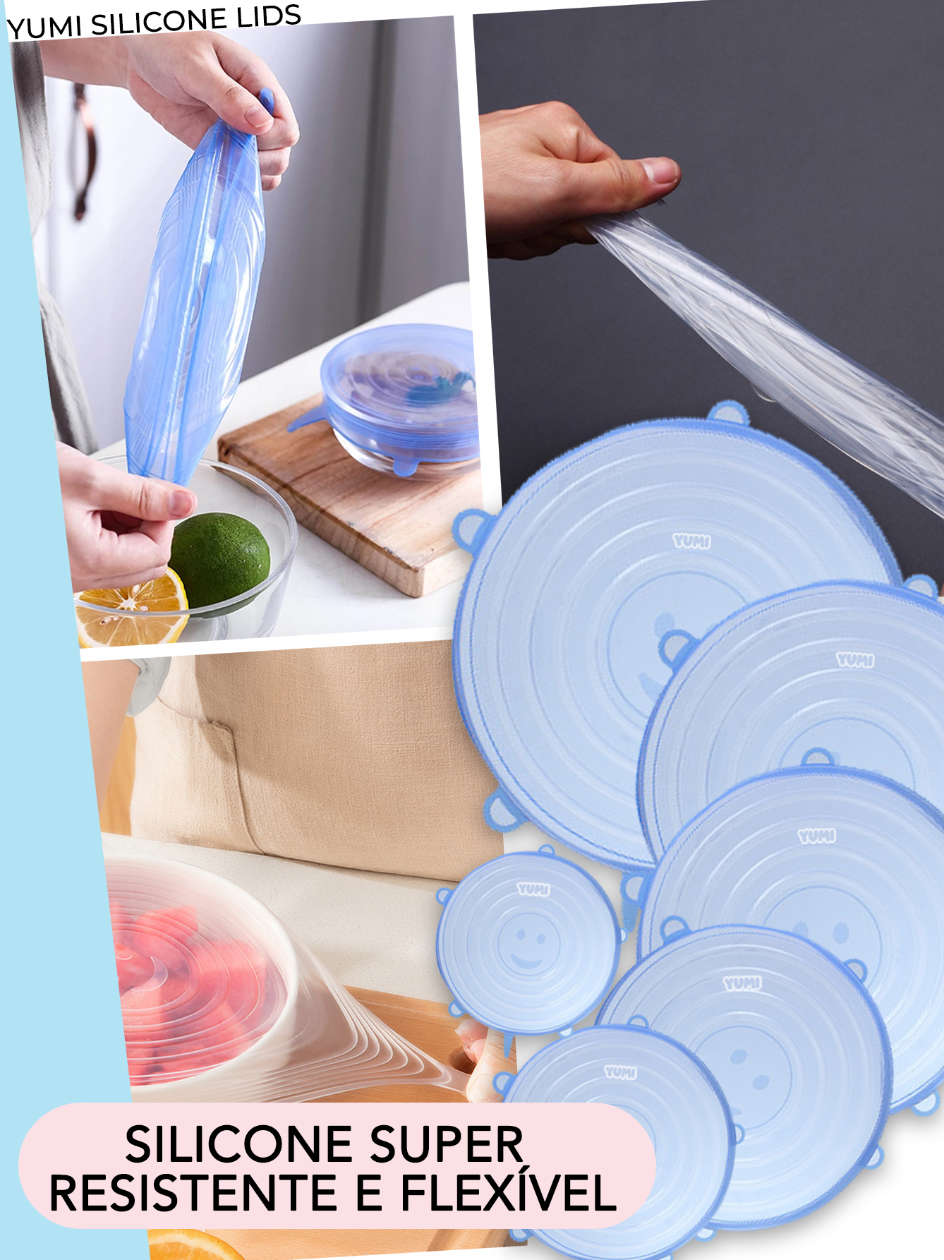A Melhor Kit 6 Tampas Silicone, Tampa panela Elástica Reutilizável Elástica para Potes Tapoer Cozinha Flexível