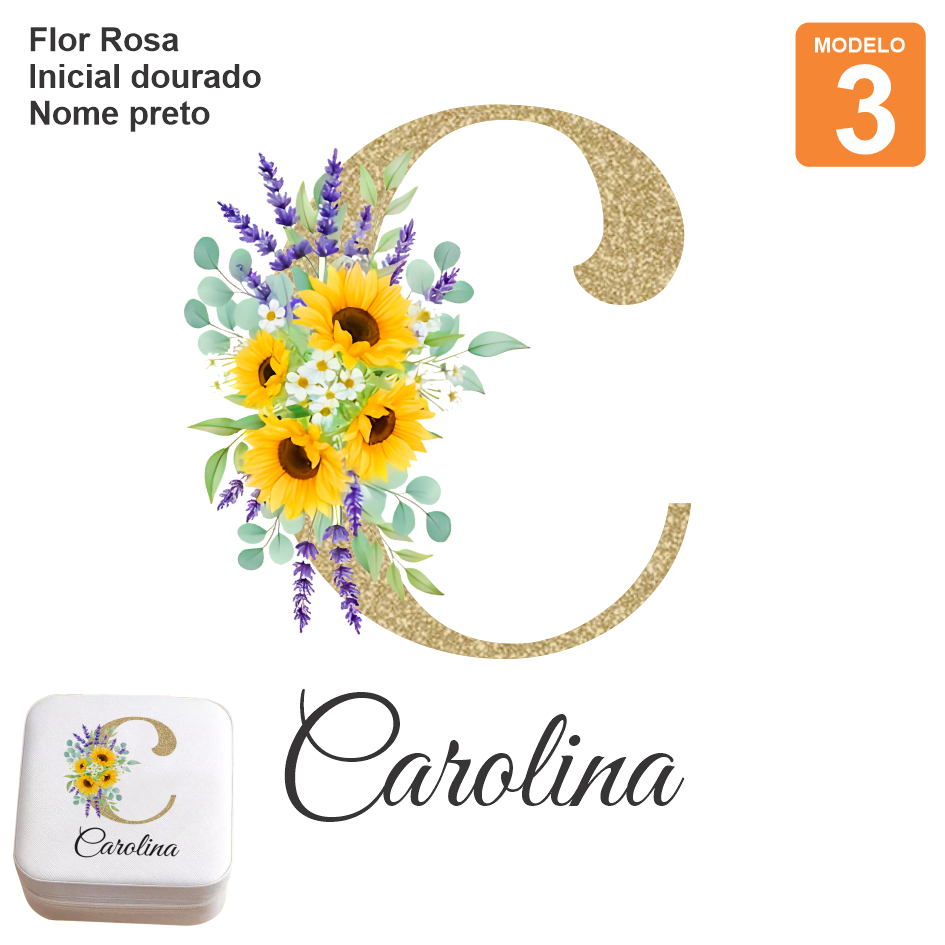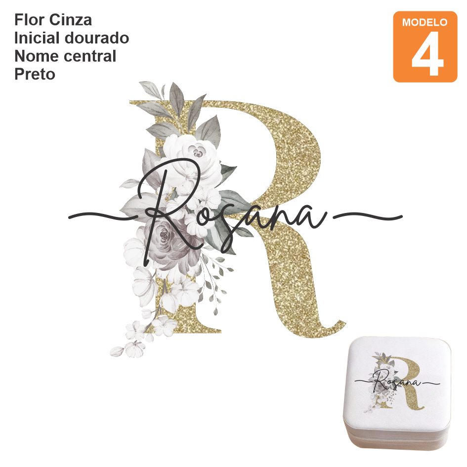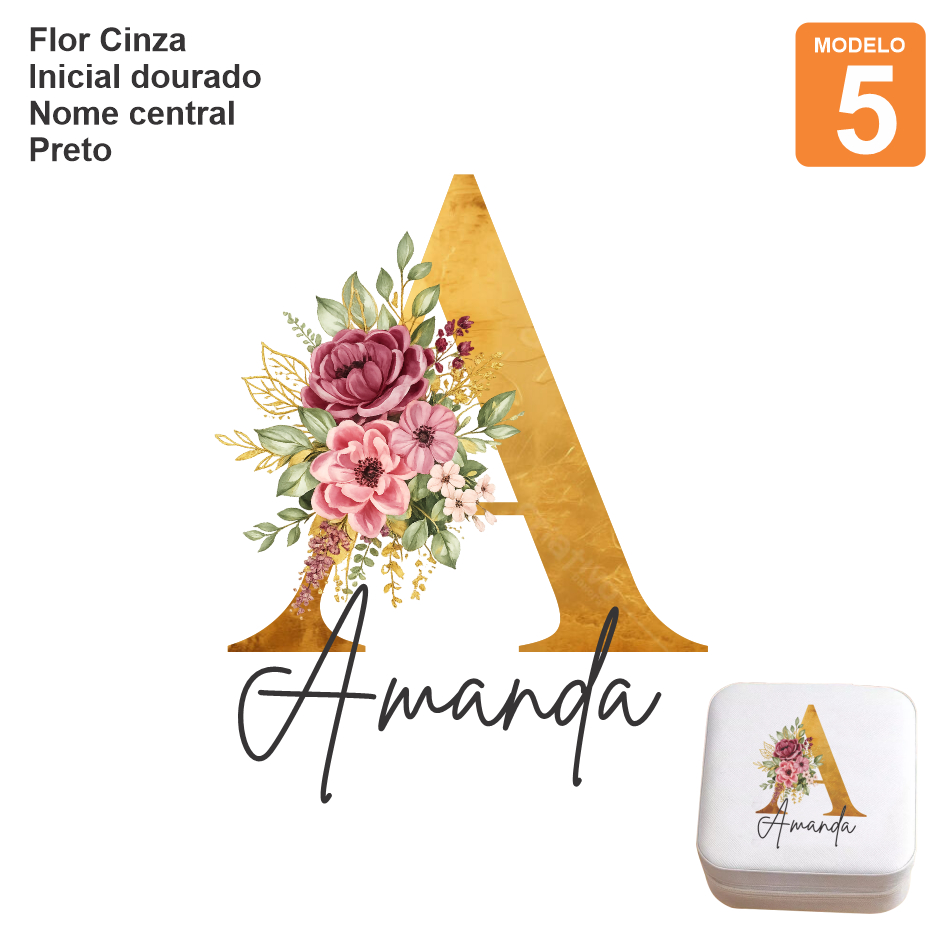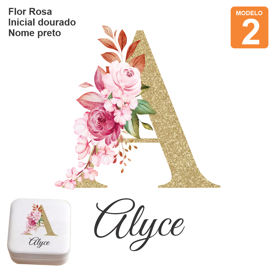 ADESIVO TERMOCOLANTE COLORIDO DTF PARA PORTA JOIAS FLOR + INICIAL + NOME